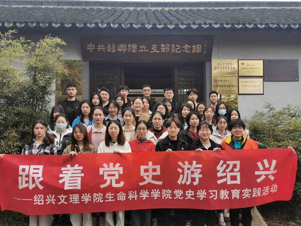 4月8日下午,生命科学学院组织全体学生党员前往中共绍兴独立支部纪念馆开展“跟着党史游绍兴”主题党日活动。中共绍兴独立支部纪念馆是柯桥区首批农村红色革命教育基地,是绍兴革命的第一颗火种,早期绍兴党组织在此建立秘密联络站,组织发动2.5万名丝织机业工人大罢工并取得胜利,历史意义深远。