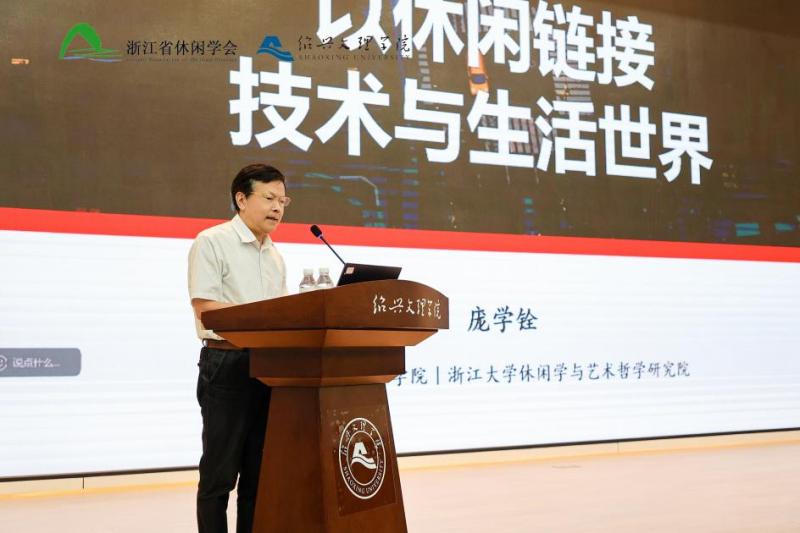 浙江大学哲学学院庞学铨教授在《以休闲链接技术与生活世界》的演讲中,指出技术世界的本质是由效率、计算和数据构成,而生活世界是与人的主体性、情感与价值密切联系。休闲的根本特征是个体性、自由性、乐意性,休闲有在人和社会的同一化同质化中唤醒主体性的力量,休闲涉及生活世界的各个领域,休闲具有的链接功能可以在各个领域发挥作用。随后,从休闲作为重建生活秩序的“依托”,休闲作为“人机物”三元融合社会的“调节阀”,休闲作为意义世界的“恢复器”,休闲作为社交的“真实空间”与 休闲作为诗意地运用技术的“场域”六个方面展开了阐述。