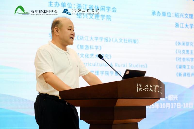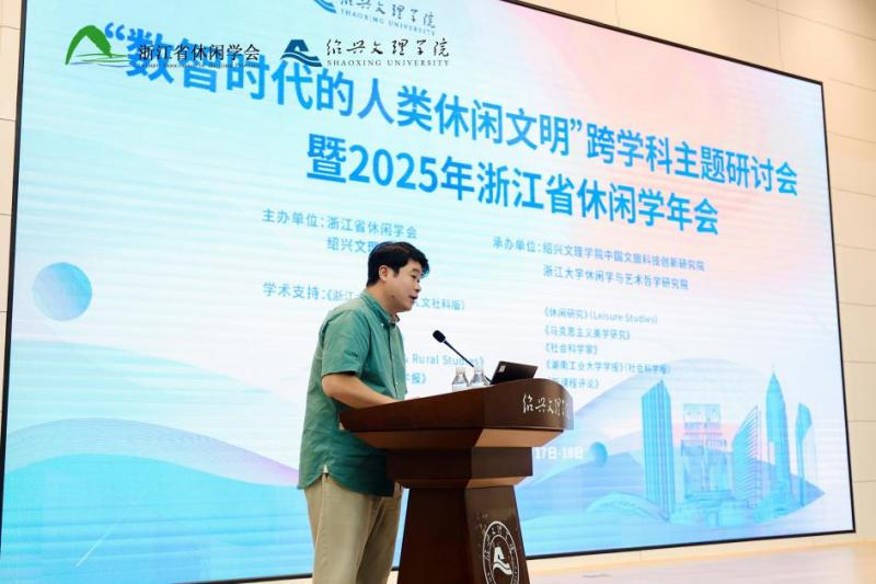 徐健指出,省休闲学会作为本领域我省专有学术共同体平台,深耕研究、应用与交流,引领学科发展,取得了丰硕成果,增强了我省学术话语权,为繁荣发展浙江省文化事业和文旅休闲产业、推进本领域的浙江实践和经验探索贡献了智慧和力量。数智时代赋予休闲文明以全新的内涵与形式,构建起以精神提升、兴趣满足为核心的休闲新形态。VR沉浸式体验、AI个性化推荐、区块链数字资产保护等科技融合改变生活,开展相关研究是回应时代关切、推动理论创新的需要。是服务社会发展、提升文化软实力、增强国际话语权的需要。徐健强调,休闲是人们高质量生活永恒的追求,体现了人们对美好生活的向往,此次学会与绍兴文理学院合作研讨,聚焦数字技术机遇挑战,探索休闲文明新路径,关乎多领域共同关切,兼具学术与现实价值。