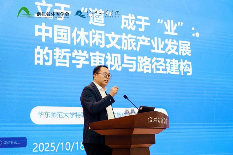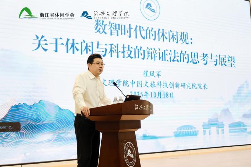 10月17日-18日,“数智时代的人类休闲文明”跨学科主题研讨会暨2025年浙江省休闲学年会在绍兴文理学院召开。会议聚焦休闲文明发展的新理念与新路径,深入探讨数字化转型与科技创新为休闲领域带来的机遇与挑战。绍兴文理学院党委书记、中国文旅科技创新研究院院长崔凤军,浙江省社会科学界联合会党组成员、副主席徐健,浙江省休闲学会荣誉会长王冬龄,浙江大学哲学学院院长王俊出席并致辞,来自省市社科联、文旅管理部门、高等院校、科研院所和文旅企业等二百余名嘉宾代表参会。开幕式由浙江省休闲学会会长、浙江大学休闲学与艺术哲学研究院副院长刘慧梅教授主持。
