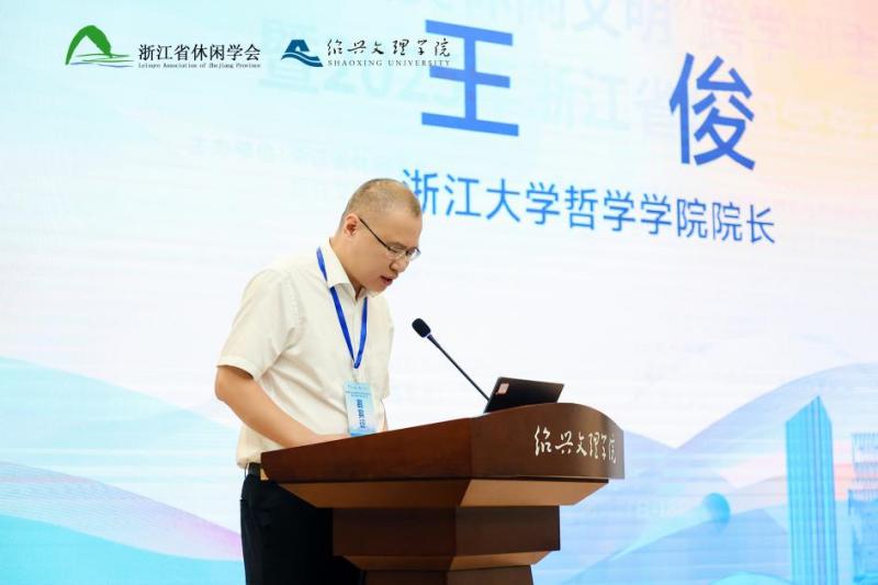 王俊表示,浙大2007年在哲学一级学科下设立全国唯一休闲学硕博点,庞学铨教授为学科奠基并创立省休闲学会。浙大哲学院位居国内哲学学科的第一方阵,休闲学是其一张创新金名片,浙江大学休闲学与艺术哲学研究院也汇聚各方优势力量持续推进休闲学研究。他指出,浙江省休闲学会以休闲学为枢纽、以哲学为代表的人文社会科学,与地方文旅相关产业规划等紧密结合,具有显著的学术和社会效益,拓展了休闲学的学术影响力,也极大助力了休闲学学科的发展。他强调,数智时代技术深刻改变生活,此次会议主题极具时代意义,大会为休闲学理论创新、实践发展及美好休闲文明建设贡献智慧。