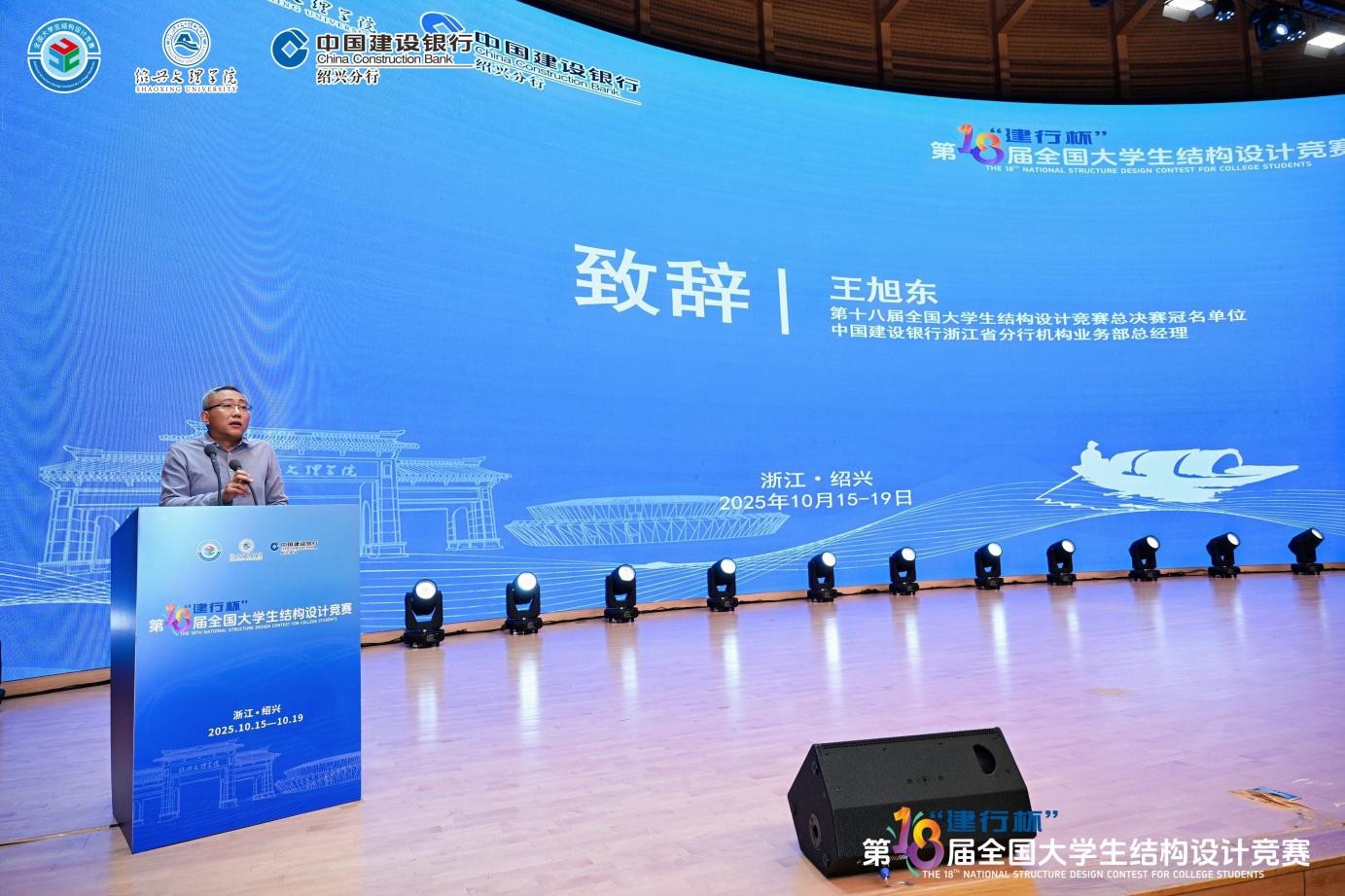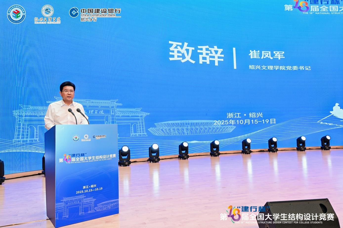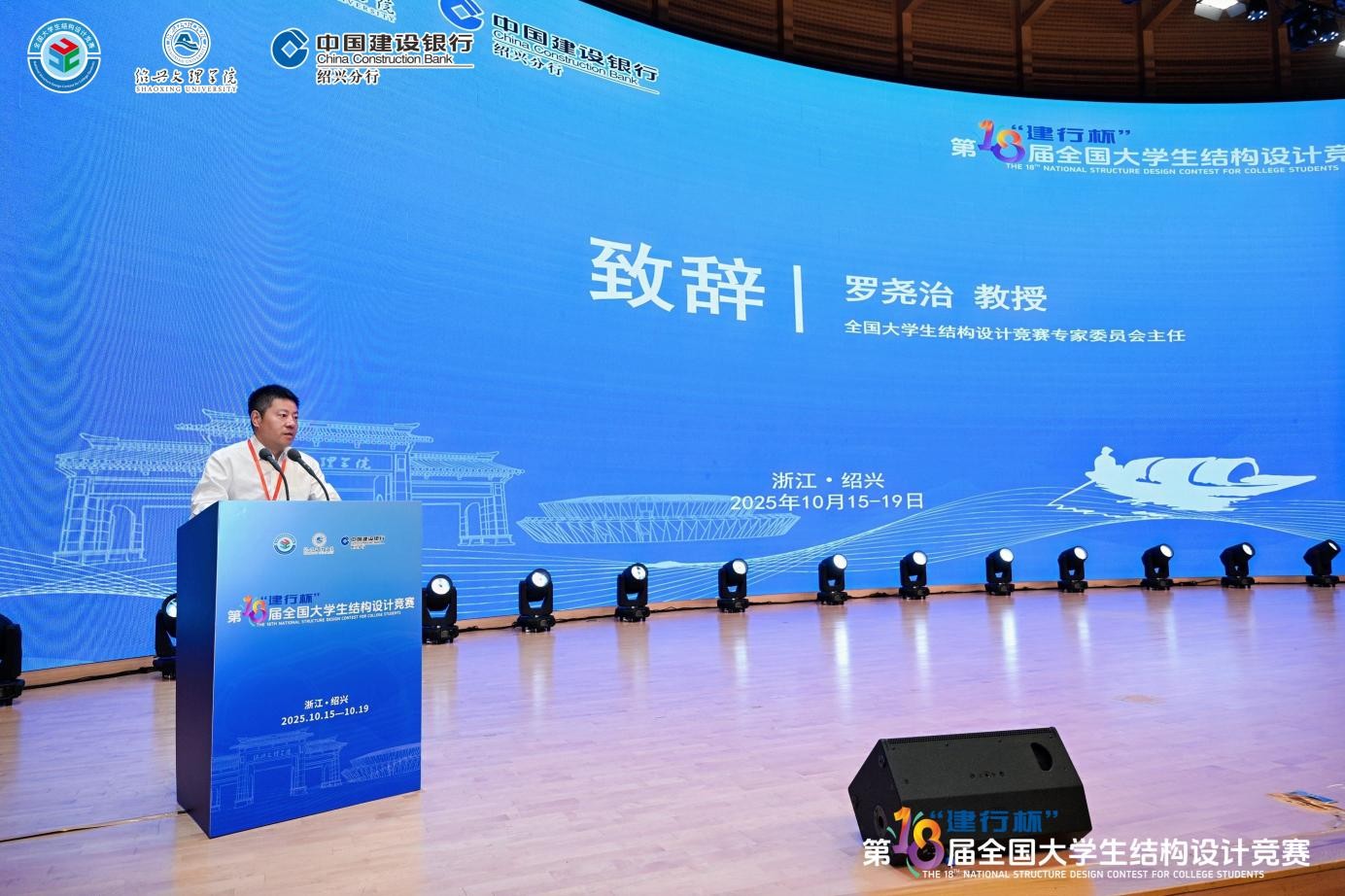 10月19日,“建行杯”第十八届全国大学生结构设计竞赛闭幕式在绍兴文理学院举行。绍兴文理学院党委书记崔凤军,全国大学生结构设计竞赛委员会主任罗尧治,绍兴文理学院校长、全国大学生结构设计竞赛委员会副主任赵阳,第十八届大赛专家委员会成员,下一届赛事承办高校内蒙古科技大学副校长陈明,绍兴文理学院副校长柳国庆,绍兴市教育局副局长方邵旭辉,全国大学生结构设计竞赛委员会副秘书长毛一平、丁元新,中国建设银行浙江省分行总经理王旭东等领导嘉宾以及600余名参赛师生代表等出席闭幕式。闭幕式由绍兴文理学院土木工程学院院长姬建主持。