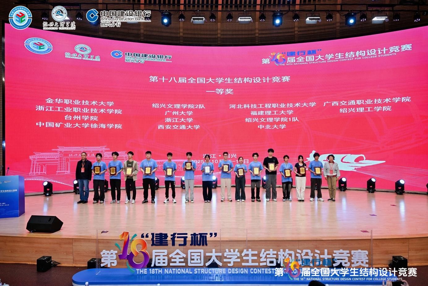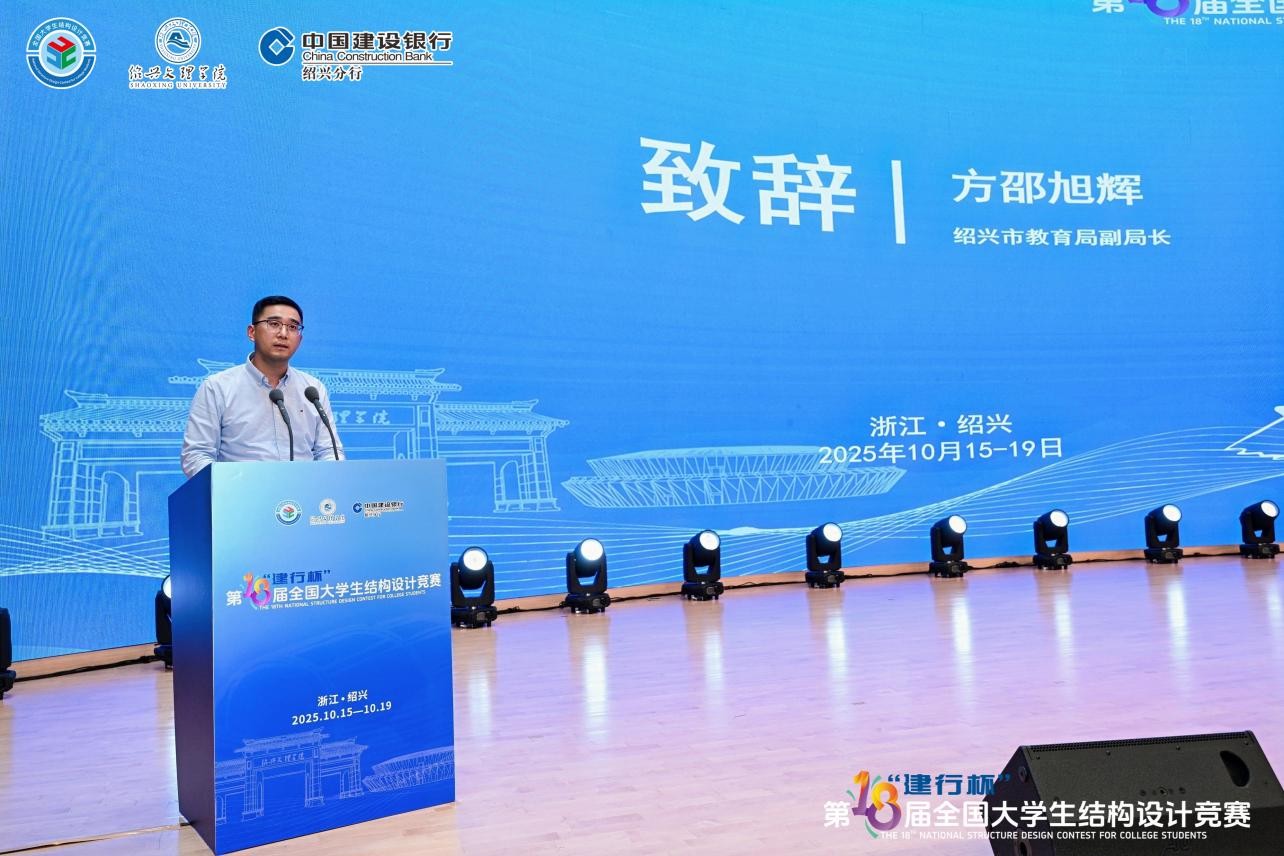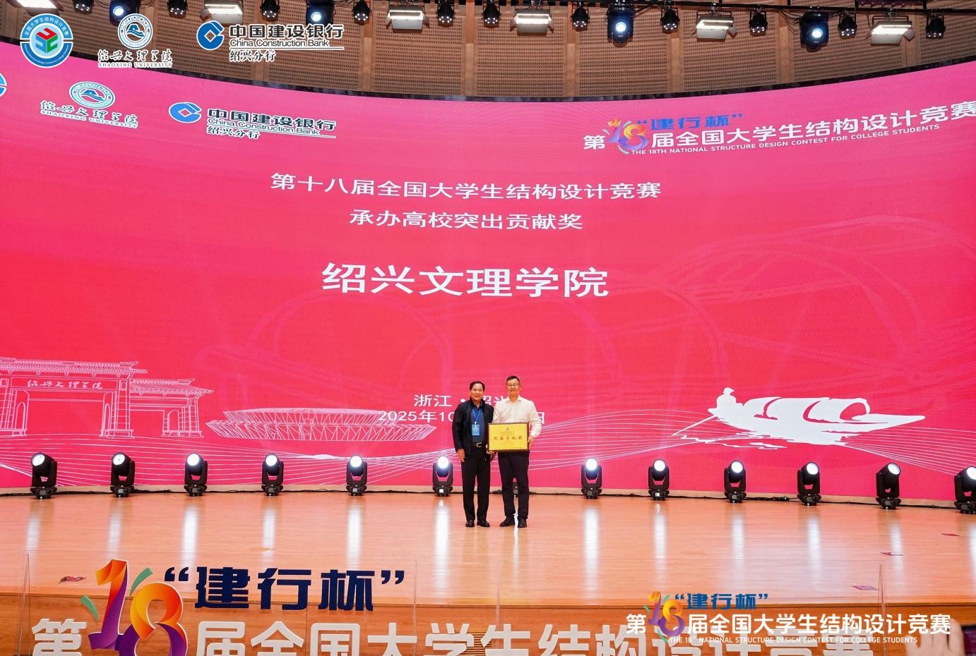 10月19日,“建行杯”第十八届全国大学生结构设计竞赛闭幕式在绍兴文理学院举行。绍兴文理学院党委书记崔凤军,全国大学生结构设计竞赛委员会主任罗尧治,绍兴文理学院校长、全国大学生结构设计竞赛委员会副主任赵阳,第十八届大赛专家委员会成员,下一届赛事承办高校内蒙古科技大学副校长陈明,绍兴文理学院副校长柳国庆,绍兴市教育局副局长方邵旭辉,全国大学生结构设计竞赛委员会副秘书长毛一平、丁元新,中国建设银行浙江省分行总经理王旭东等领导嘉宾以及600余名参赛师生代表等出席闭幕式。闭幕式由绍兴文理学院土木工程学院院长姬建主持。