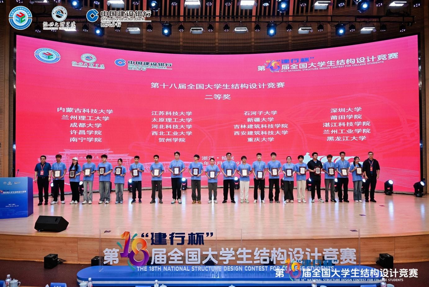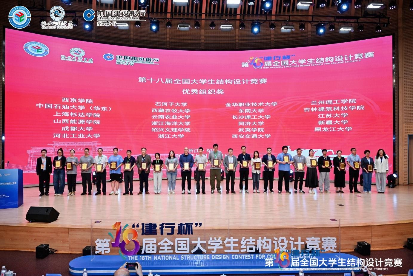 颁奖环节,组委会宣布竞赛获奖名单。同济大学荣获总冠军(一等奖);绍兴文理学院等42支参赛队伍荣获一等奖,内蒙古科技大学等60支参赛队伍荣获二等奖,滁州学院等46所高校荣获优秀组织奖。我校荣获大赛优秀组织奖、承办高校突出贡献奖;我校共有两支参赛队伍均获一等奖,创历史新高。