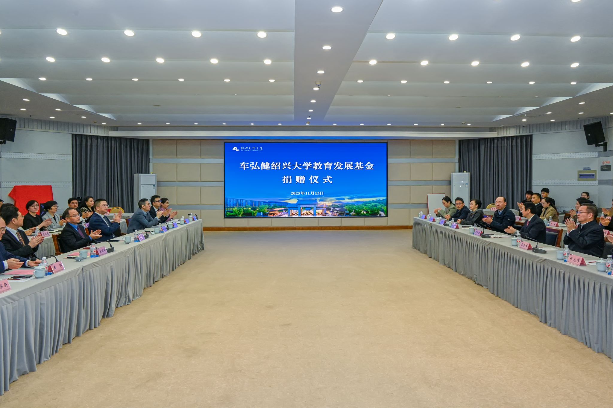 11月13日上午,“车弘健绍兴大学教育发展基金”捐赠仪式在我校举行。全国政协委员、省政协常委、香港浙江同乡会联合会第一常务副会长车弘健先生及其家人,省委统战部副部长、省侨办主任姜景峰,省委统战部港澳台处副处长郑元伟,市委统战部常务副部长单滨新,市委统战部港澳台和侨务工作处处长童斌,校党委书记崔凤军,校长赵阳,校党委副书记黄坚,副校长、教育基金会理事长陈均土,校党委委员宋浩成、黄曼,绍兴瑞越仪器有限公司总经理任春旸等出席捐赠仪式,仪式由黄坚主持。