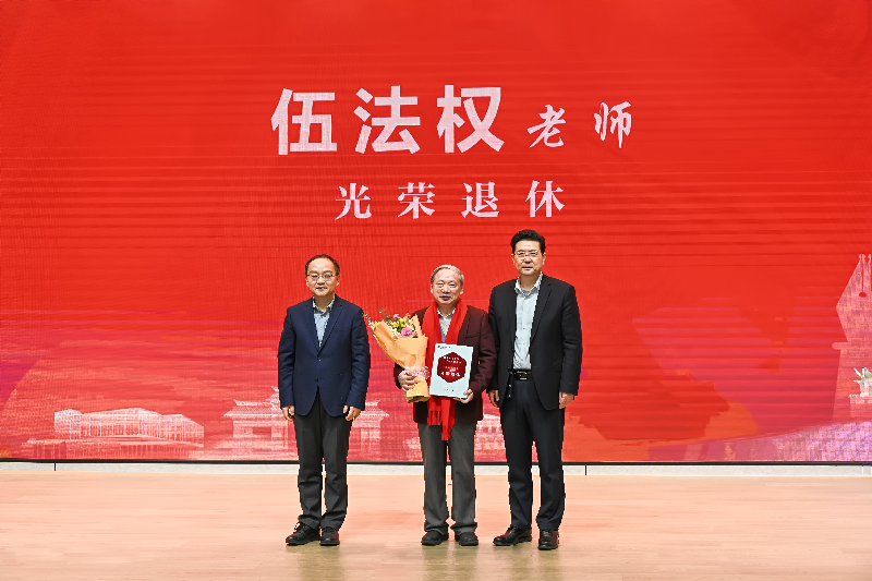 修德求真,桃李芬芳。12月15日下午,学校举行2025年教职工荣休仪式,为49位退休教职工送上最诚挚的祝福和衷心的感谢。校党委书记崔凤军,校长赵阳,校党政领导班子成员柳国庆、黄坚、陈均土、唐晓青、赵浪平、宋浩成、黄曼出席仪式,仪式由校党委副书记黄坚主持。