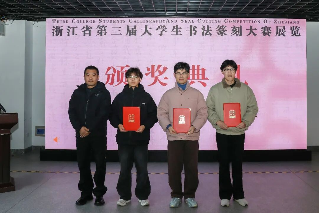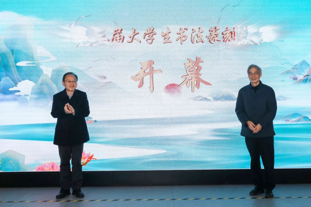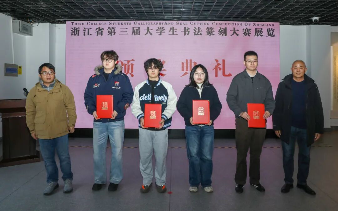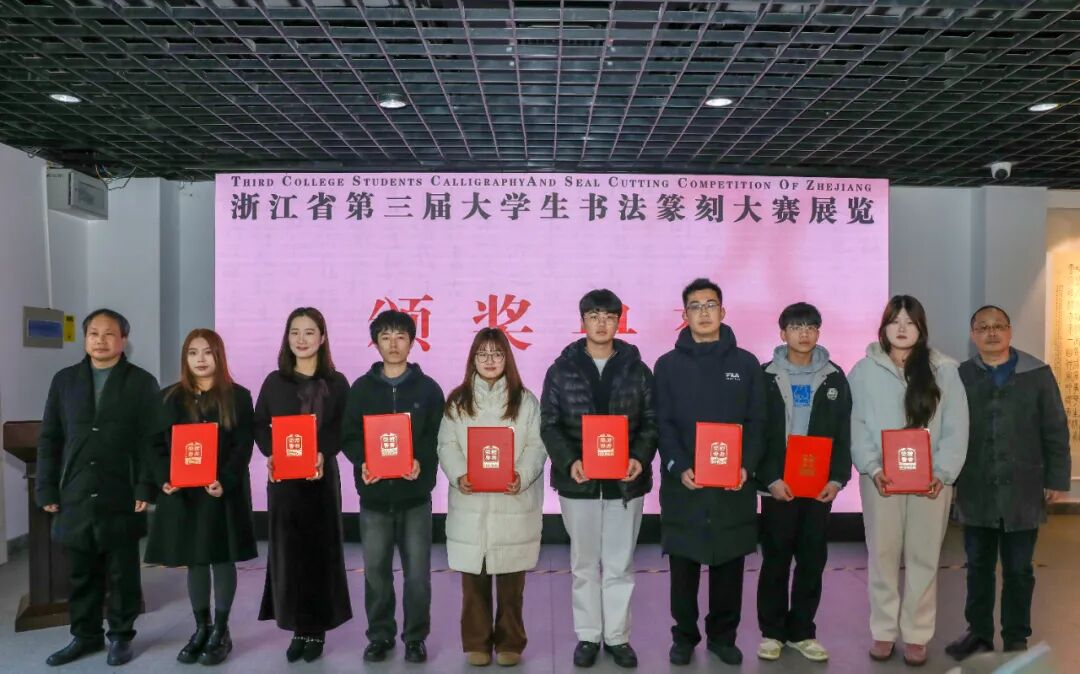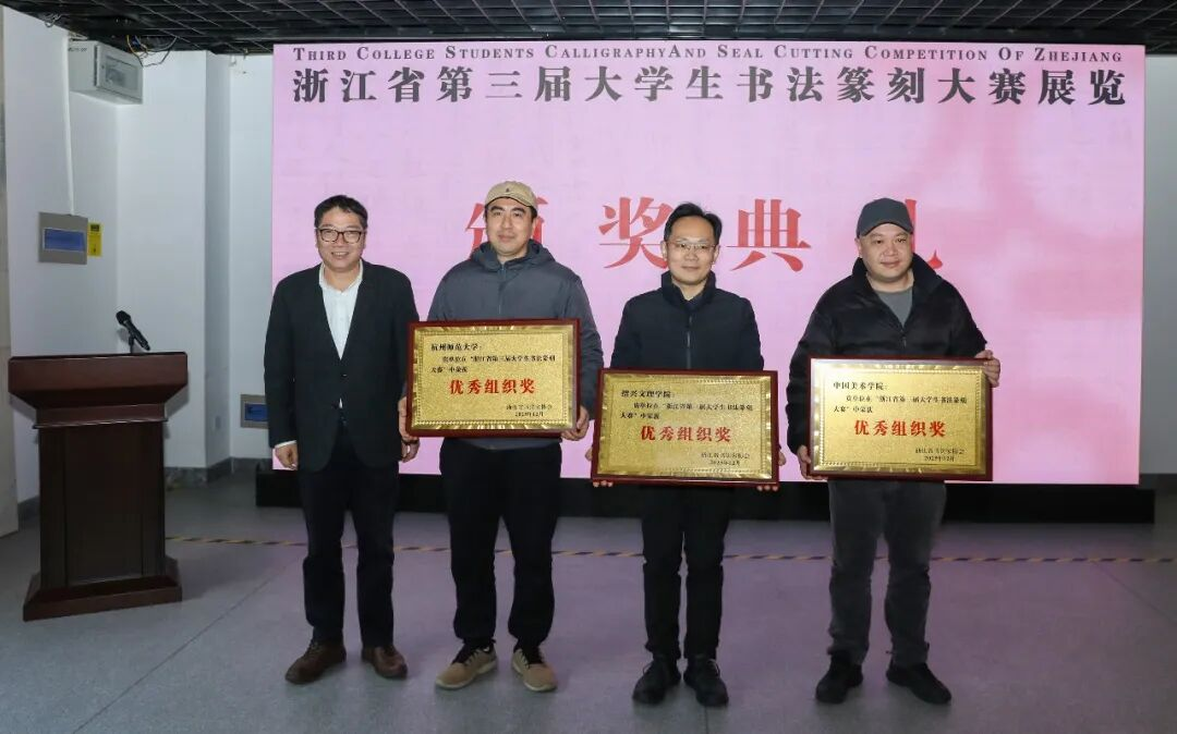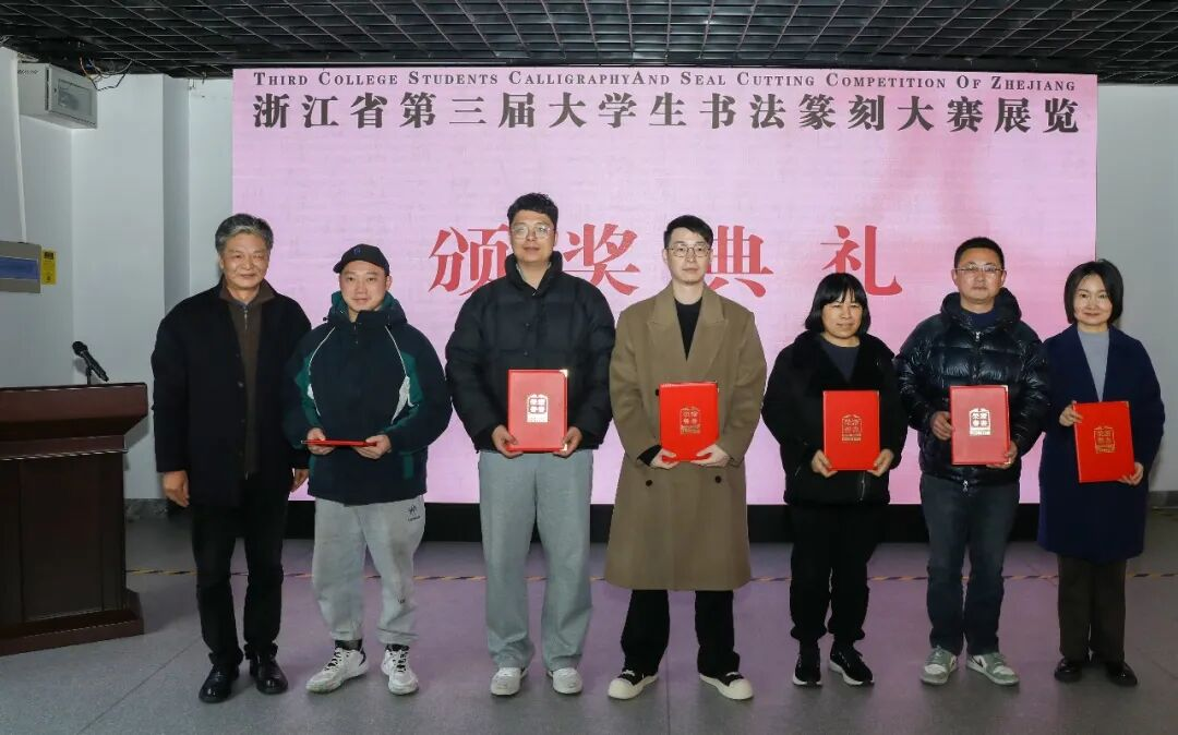12月26日下午,浙江省第三届大学生书法篆刻大赛作品展在我校开幕。浙江省文联副主席、省书法家协会主席赵雁君,绍兴文理学院校长赵阳,副校长陈均土,省书协副主席兼秘书长何涤非,省书协副主席沈伟、何来胜、黄寿耀,省书协副秘书长傅建华、贺维豪,省书协学术委员会委员、杭州师范大学教授陈根民,大赛评审委员、杭州师范大学副教授刘东芹,兰亭书法艺术学院院长刘小华等,与兰亭书法艺术学院师生代表、全省高校获奖学生及优秀指导教师齐聚书法圣地,共同见证这场传统与青春交融的艺术盛会。