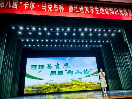 “大学生讲思政课”环节中,我校学子表现亮眼。马克思主义学院研究生李晨钰以《寻理马克思 问道两山论》为题,从马克思主义经典著作中探寻生态理论密码,结合“天人合一”传统智慧与习近平生态文明思想,用安吉余村的生动实践解读“两山论”的“浙江方案”,以绍兴“五水共治”八夺“大禹鼎”书写“江南水乡的生态辩证法”的“绍兴样本”。本科生潘心甜的《文化赋能 古城焕新》则将目光聚焦绍兴本土,结合“八八战略”建设文化大省的要求和二十年实践,运用首批国家历史文化名城绍兴建设“产城人文融合发展共富示范市”的案例,细数古城文旅融合创新传承的探索之路,生动诠释了“不忘本来,吸收外来,面向未来”的发展智慧。两位同学的思政课让枯燥的理论在鲜活案例中落地生根,双双斩获二等奖。