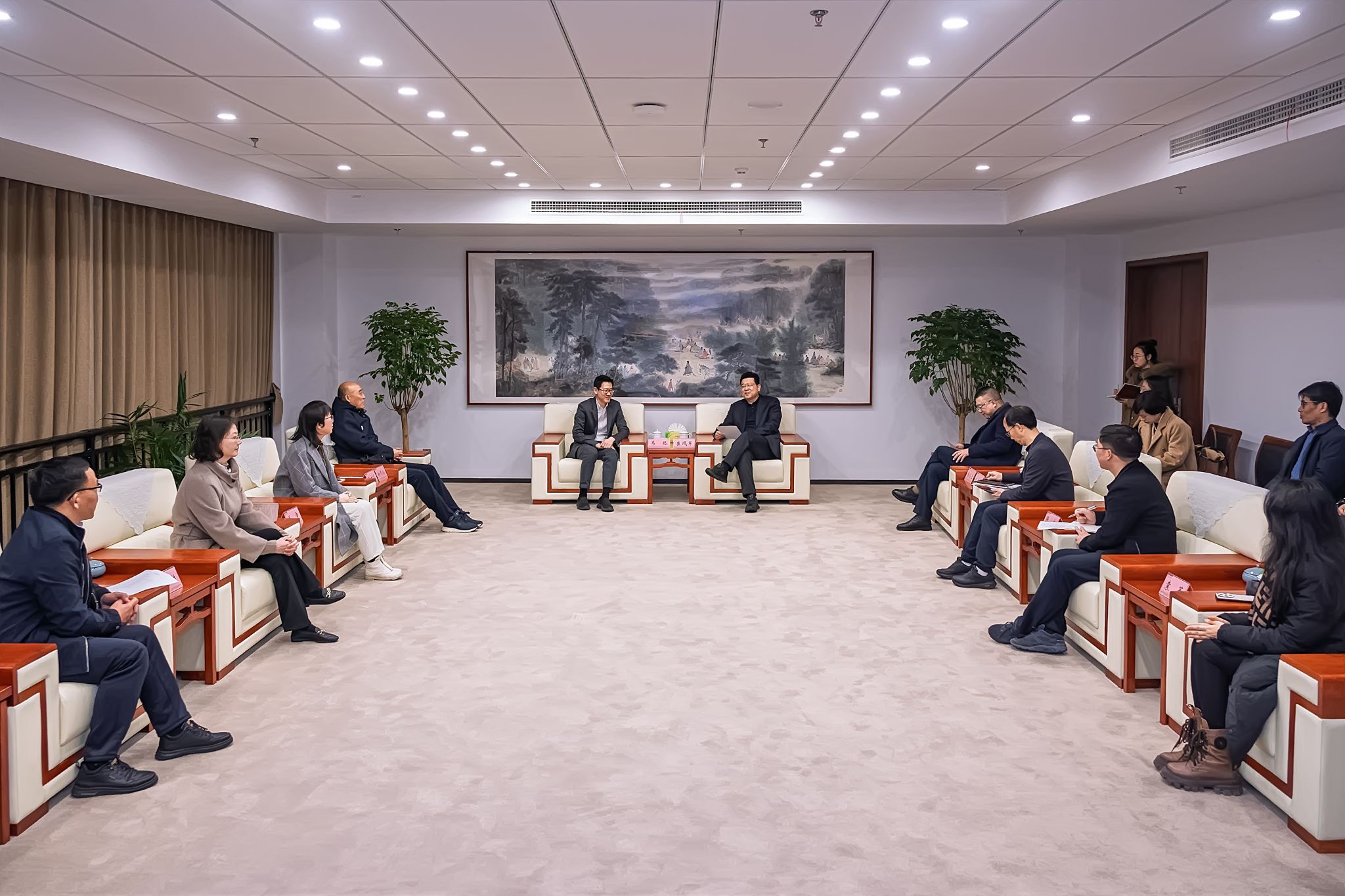 浙江传媒学院办公室、发展规划处、人文社科处、社会合作处、桐乡校区管委会、人事处、新闻传播学院、团委相关负责人,我校办公室、发展规划处、人事处、学生工作部、地方合作处、后勤管理处、体育学院相关负责人等参加座谈。