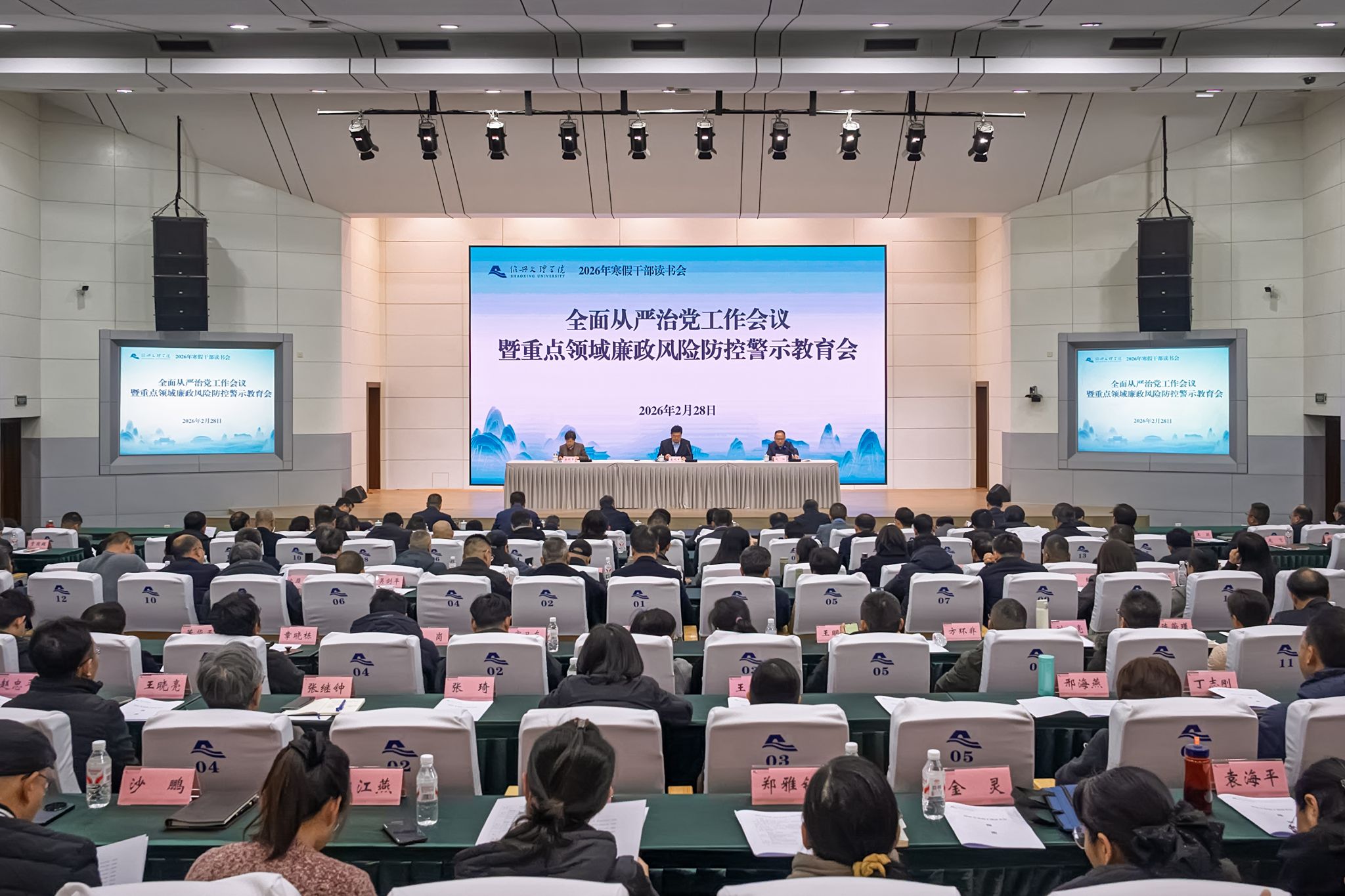 会议第一阶段是新学期全面从严治党工作会议暨重点领域廉政风险防控警示教育会。会议深入学习习近平总书记关于党的自我革命的重要思想,深入学习贯彻党的二十届四中全会精神,筑牢思想防线、防范廉政风险,以案示警、以案为鉴,严明纪律、严守规矩,推动全面从严治党向纵深发展,持续营造风清气正的政治生态。