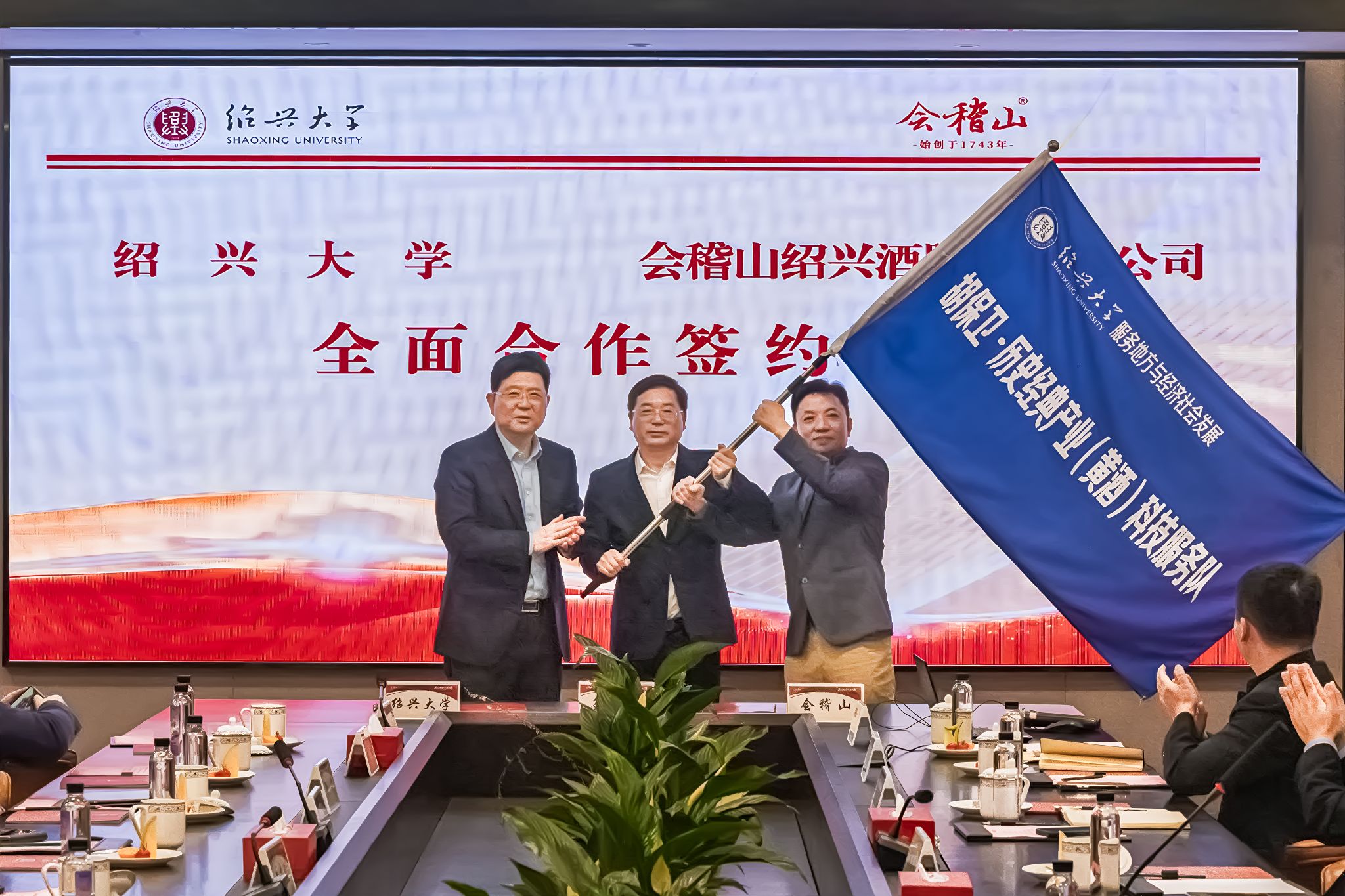 此次签约标志着双方的合作迈向全方位深度融合,标志着学校服务黄酒历史经典产业的专业力量全面集结,校地企协同创新,赋能产业提质升级。双方将聚焦三大重点,推动合作走深走实、见行见效。一是共建黄酒学院,打造产教融合人才高地。黄酒学院实行双院长负责制,双方共商共治、协同发力;创新人才培养模式,着力培养懂技术、通文化、善经营、能创新的复合型黄酒产业人才。二是建强科技服务队,构建产业技术攻坚联盟。依托整合多学科资源组建的“胡保卫•历史经典产业(黄酒)科技服务队”,全面推行“企业出题、学校答题、车间验题、市场评价”的协同攻关机制,精准对接会稽山技术研发、品牌升级、包装设计、工艺优化等核心需求,加速科研成果转化,让学术优势转化为产业优势,让实验室成果直通生产线、走向大市场。三是深化产城人文融合,擦亮绍兴黄酒金名片。联合开展文化研究、非遗传承、品牌策划、文旅创新等项目,以文化创意提升产业附加值,携手擦亮绍兴黄酒这张世界级城市金名片,推动历史经典产业高质量发展、深化产城人文融合发展。