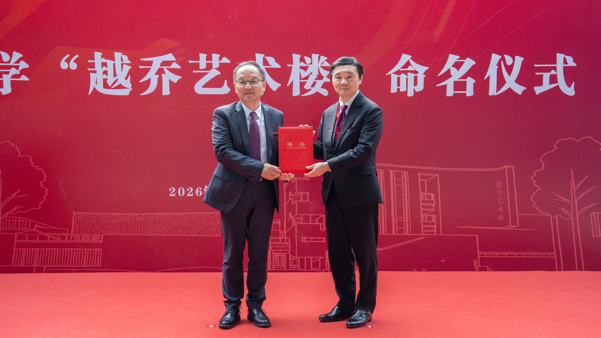 崔凤军表示,绍兴大学从小到大、从弱到强、从学院迈向大学,每一步成长都镌刻着旅港乡贤的大爱,每一步跨越都凝聚着桑梓深情。从车越乔先生率先慷慨捐资带动旅港乡贤捐资,为绍兴文理学院夯基垒土、筑牢根基,到车越乔先生将所珍藏的吴昌硕、齐白石等名家珍贵书画无偿捐赠学校,为学校文化传承与艺术教育点亮薪火,到如今在学校圆梦绍兴大学、全力冲刺博士学位授予单位的关键时期,车弘健先生秉承先父遗志,接力兴学助教,慷慨捐资1000万元设立“车弘健绍大发展基金”,续写了车氏家族情系教育、造福桑梓的动人篇章。学校为铭记车越乔先生的不朽功绩,传承车氏家族的桑梓深情,特将河东艺术组团1号楼冠名为“越乔艺术楼”,这座楼宇,既是对车越乔先生的深切缅怀,也是对车氏家族无私善举的永恒致敬。