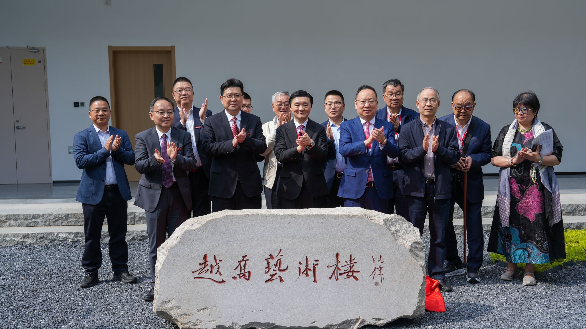 与会领导嘉宾为“越乔艺术楼”题名石揭幕,并合影留念。