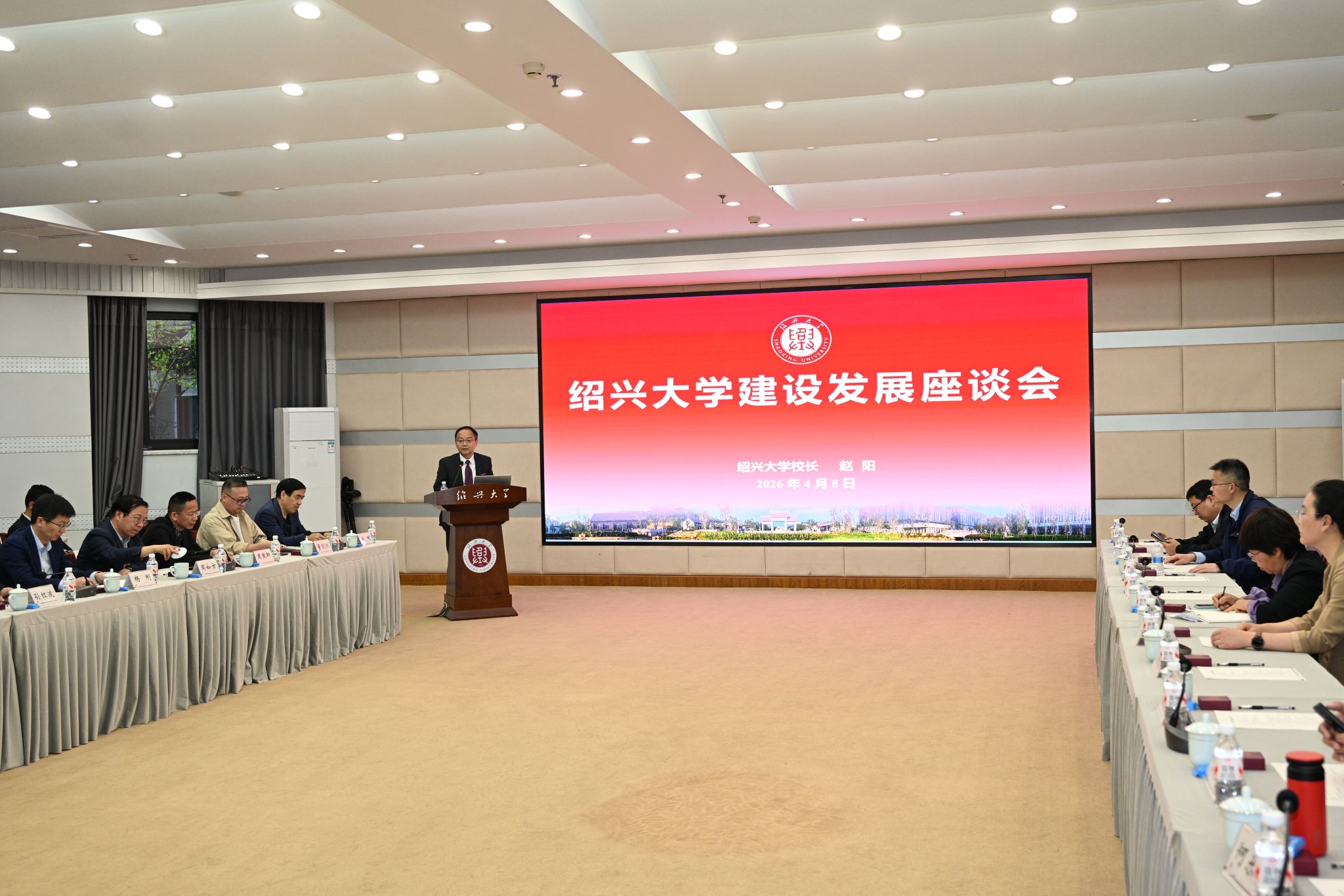 4月8日下午,绍兴大学建设发展座谈会在学校图书馆一楼报告厅举行。学校领导、校友总会代表及各地校友代表齐聚一堂,围绕学校未来发展建言献策、共话蓝图。校长赵阳出席会议并讲话,会议由副校长陈均土主持。