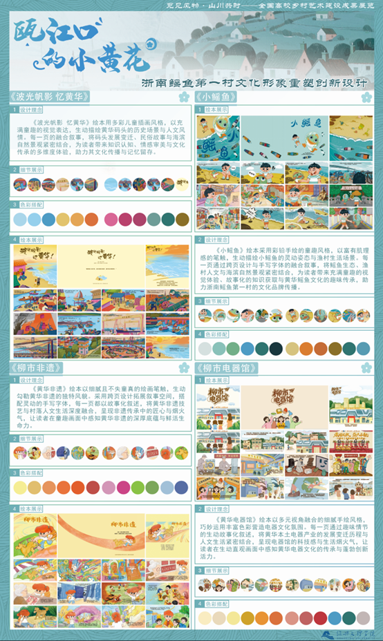 近日,由省级文化特派员——绍兴文理学院蔡元培艺术与设计学院副教授路毅主持的柳市镇《“浙南鳐鱼第一村文化”文化品牌提升》项目在国家级、省级设计竞赛中斩获四项奖项,同时路毅被聘为全国乡村建设高校联盟乡村艺术建设专项委员会常务委员。其中,《文脉织补·古街新生——织补理论视域下黄华村历史街区更新设计》获第三届中国研究生“美丽中国”创新设计大赛一等奖,由中国学位与研究生教育学会、中国科协青少年科技中心颁发;《瓯江口的小黄华——浙南鳐鱼第一村文化形象重塑创新设计》入选“觅见风物·山川共时”全国高校乡村建设成果展;《数智色彩——黄华村在地文脉的视觉设计超译》获 浙江省第十五届会展策划创意大赛二等奖,《浙南鳐鱼第一村》《柳市潮声:电器之光与非遗文脉的交响》双双获第三届艺蕴中国·艺术教育创新成果展专业组文创类一等奖。