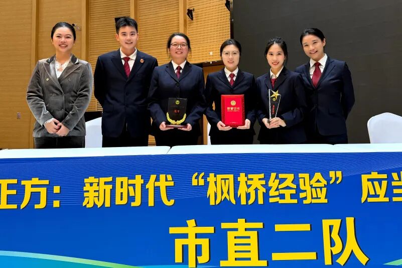 自今年6月启动以来,本次赛事历经多轮比拼,最终市直二队与越城队脱颖而出晋级决赛。决赛围绕“新时代‘枫桥经验’应当坚持优先还是发展优先”这一具有时代性与现实意义的辩题展开激烈交锋。双方辩手引经据典、逻辑缜密,从理论、实践、政策等多维度深度交锋,充分展现了全市法学法律工作者扎实的专业素养和敏锐的法治思维,彰显了新时代法治队伍的过硬本领与昂扬风采。