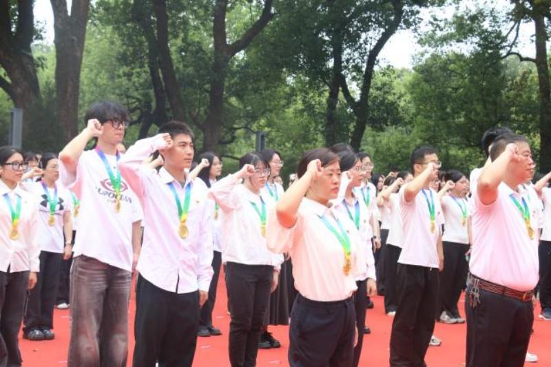 仪式中,全体党员还向烈士纪念碑敬献花篮、鲜花,重温了入党誓词。