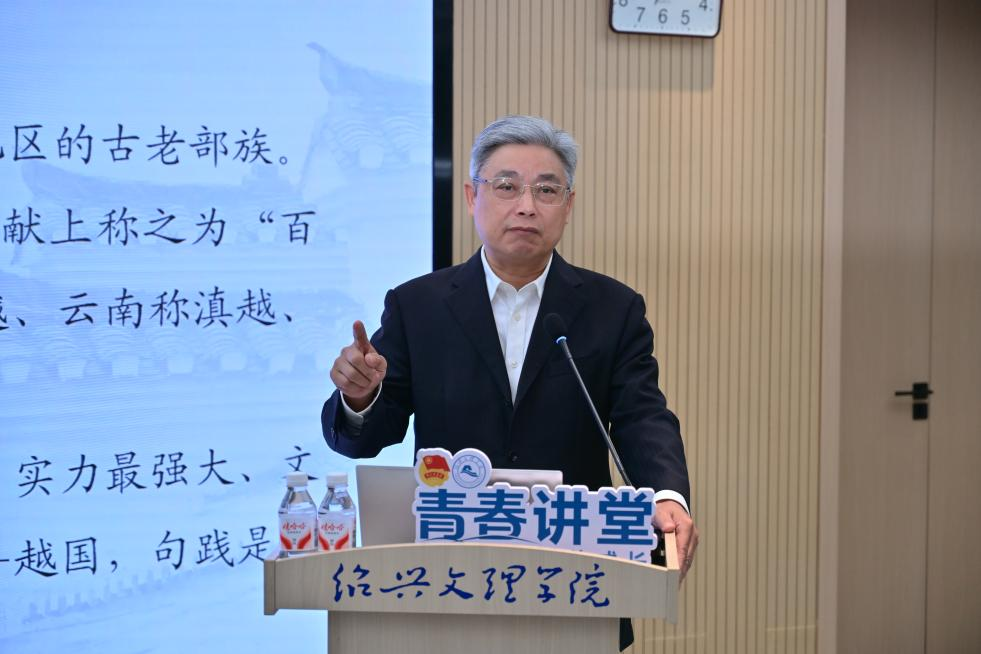 10月28日晚,绍兴文理学院“青春讲堂”迎来了“青年与城市共成长”系列讲座的第十三讲,绍兴市文史研究馆馆长、中国作家协会会员冯建荣受邀讲授《绍兴的创新文化——从於越先民的四大发明与时代价值谈起》,引领师生探寻绍兴古代创新文化的辉煌篇章,解码其中蕴含的千年智慧。