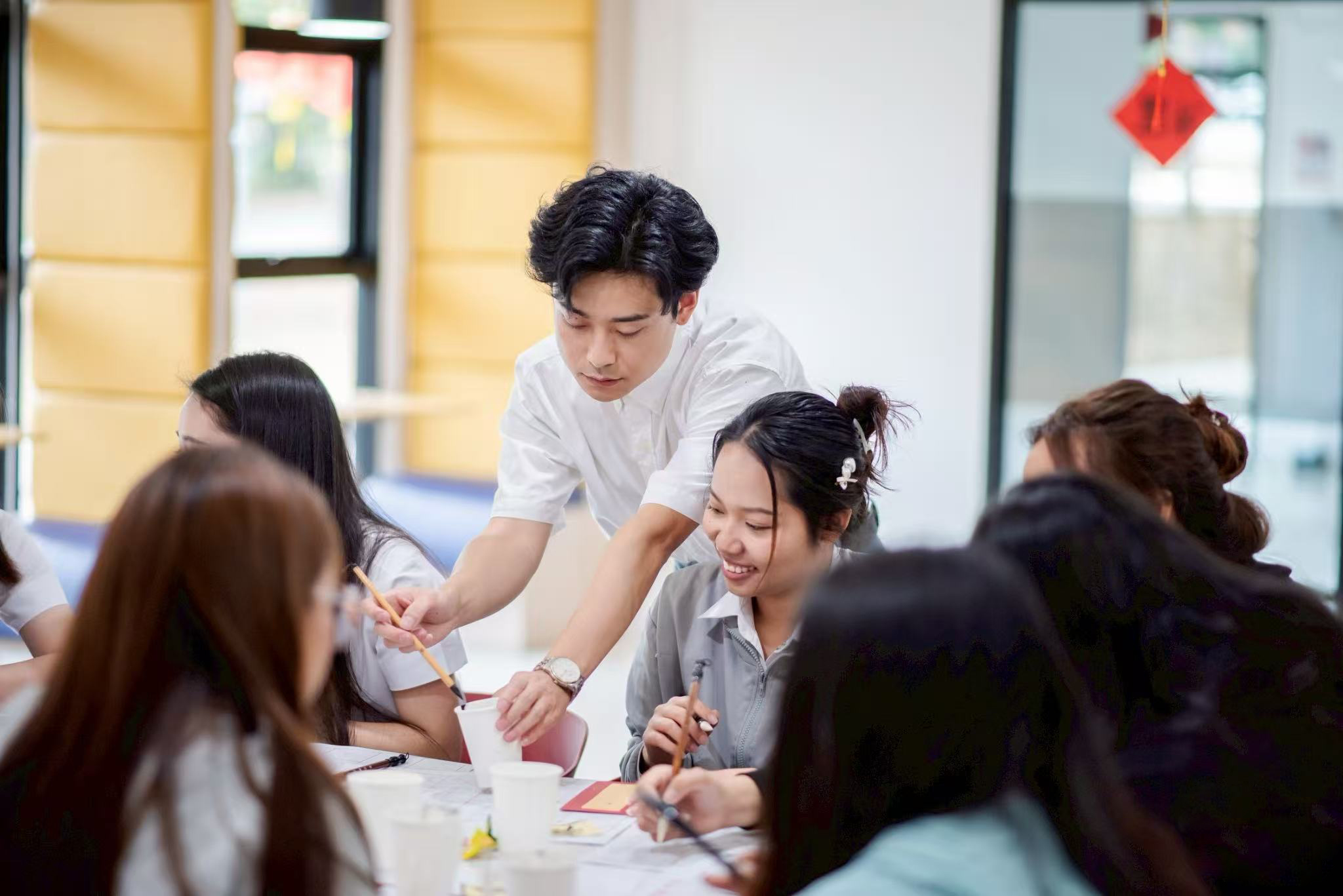 我校学生向泰国清莱皇家大学师生介绍中国书法