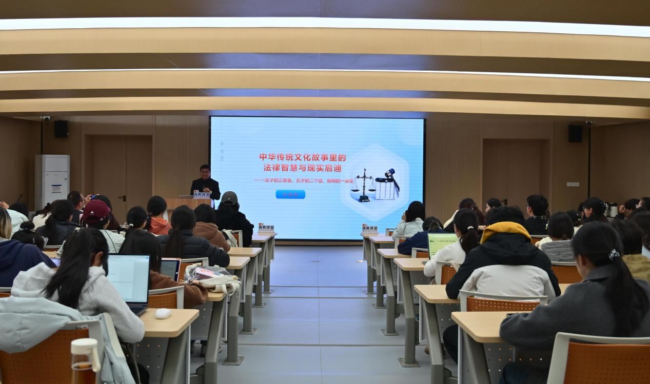 3月25日晚,我校高等人文研究院研究员朱淼蛟受邀主讲“青年与城市共成长”系列讲座第二十一讲,以“中华传统文化故事里的法律智慧与现实启迪”为主题,从庄子的三条鱼、孔子的两个徒、王阳明的一朵花中萃取传统智慧,结合司法实践案例,为青年群体解读传统文化与现代法律的深层联结。