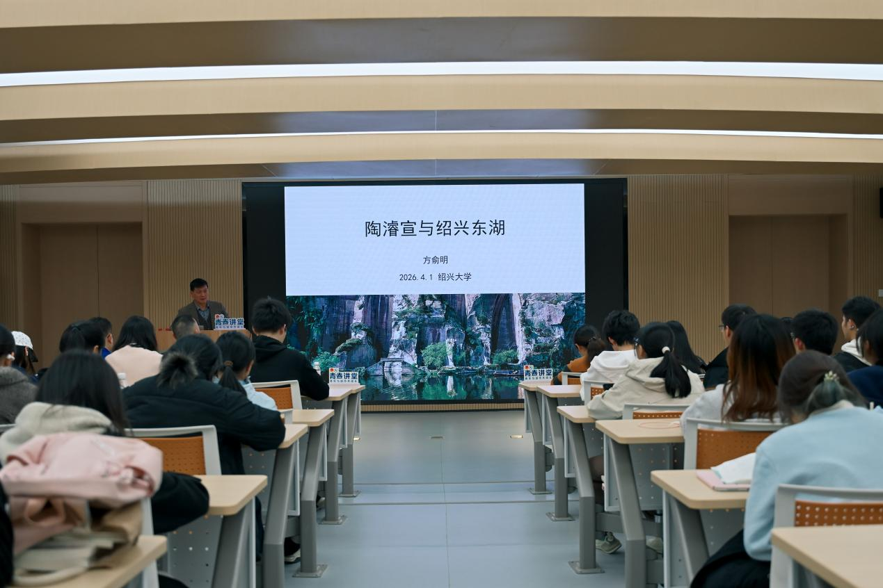 4月1日晚,绍兴大学越文化研究院特聘研究员方俞明做客“青年与城市共成长”系列讲座第二十二讲,讲述“陶濬宣与绍兴东湖”的渊源故事,围绕晚清名士陶濬宣的生平事功、东湖园林的营造历程及其蕴含的文化精神,探寻这位越地名人营造东湖、兴学育人的传奇人生,带领绍大学子思考个人力量如何推动城市文化传承与山水景观塑造。