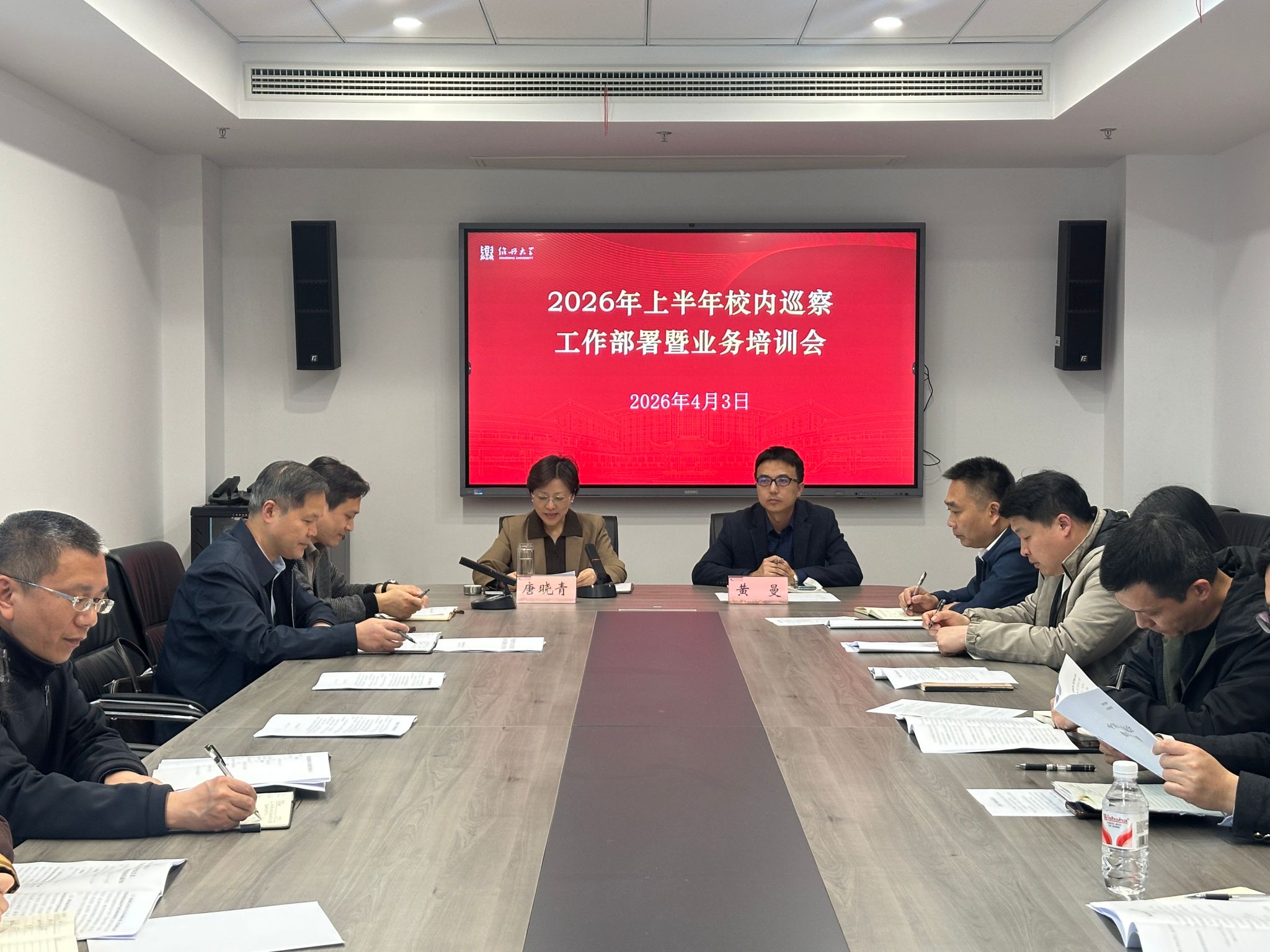 4月3日下午,学校召开2026年上半年校内巡察工作部署会并开展业务培训。校纪委书记、校党委巡察工作领导小组常务副组长唐晓青出席会议并讲话,校党委委员、组织部部长、校巡察工作领导小组成员黄曼,校党委第一、第二、第三巡察组全体成员,党委巡察办公室、宣传部相关同志参加会议。