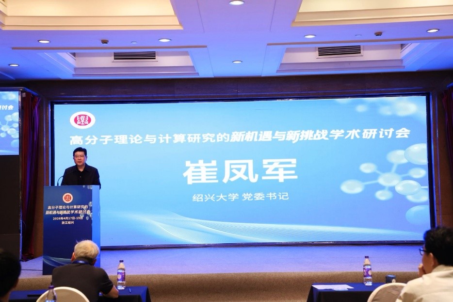 4月17日—19日,“高分子理论与计算研究的新机遇与新挑战学术研讨会”在绍兴国际大酒店举行。校党委书记崔凤军出席开幕式并致辞,麦克斯特大学教授史安昌、滑铁卢大学教授陈征宇、复旦大学高分子系主任李卫华等近130名专家学者参加研讨会。