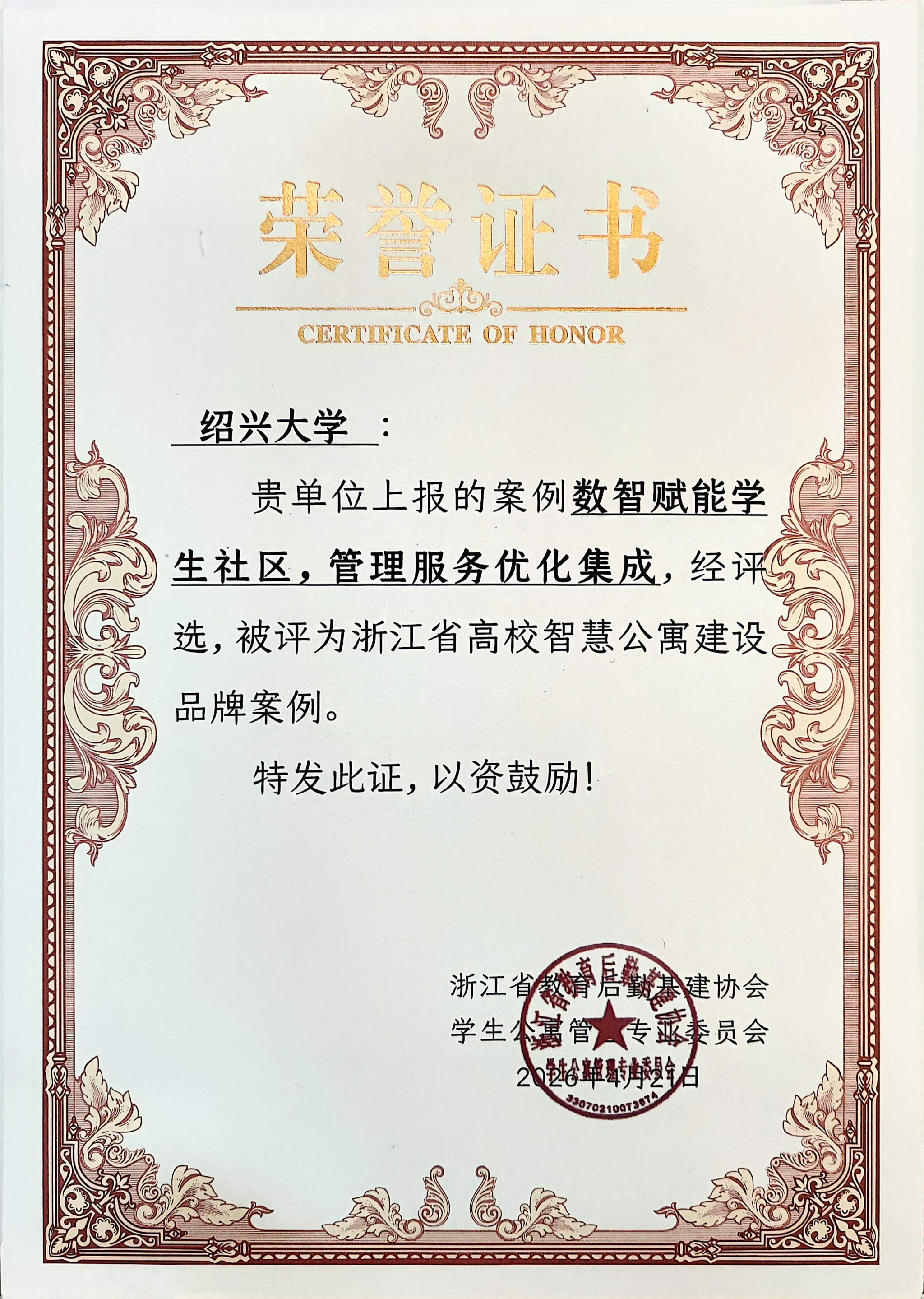 期间,举行了浙江省高校学生公寓智慧化建设优秀案例颁奖仪式,由我校书院辅导员唐冰清、吴林桂等撰写报送的案例——《数智赋能学生社区,管理服务优化集成》,成功获评浙江省高校智慧公寓建设品牌案例,在大会上接受表彰。