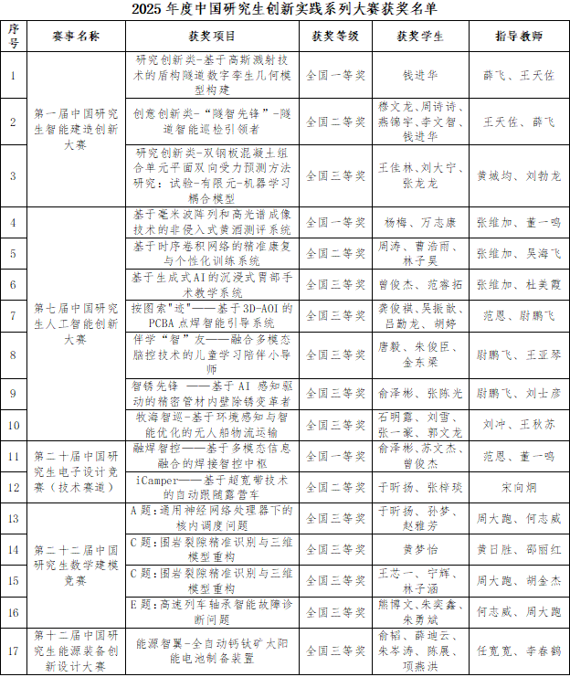 以赛促学结硕果 我校研究生在2025年度中国研究生创新实践系列大赛中屡获佳绩