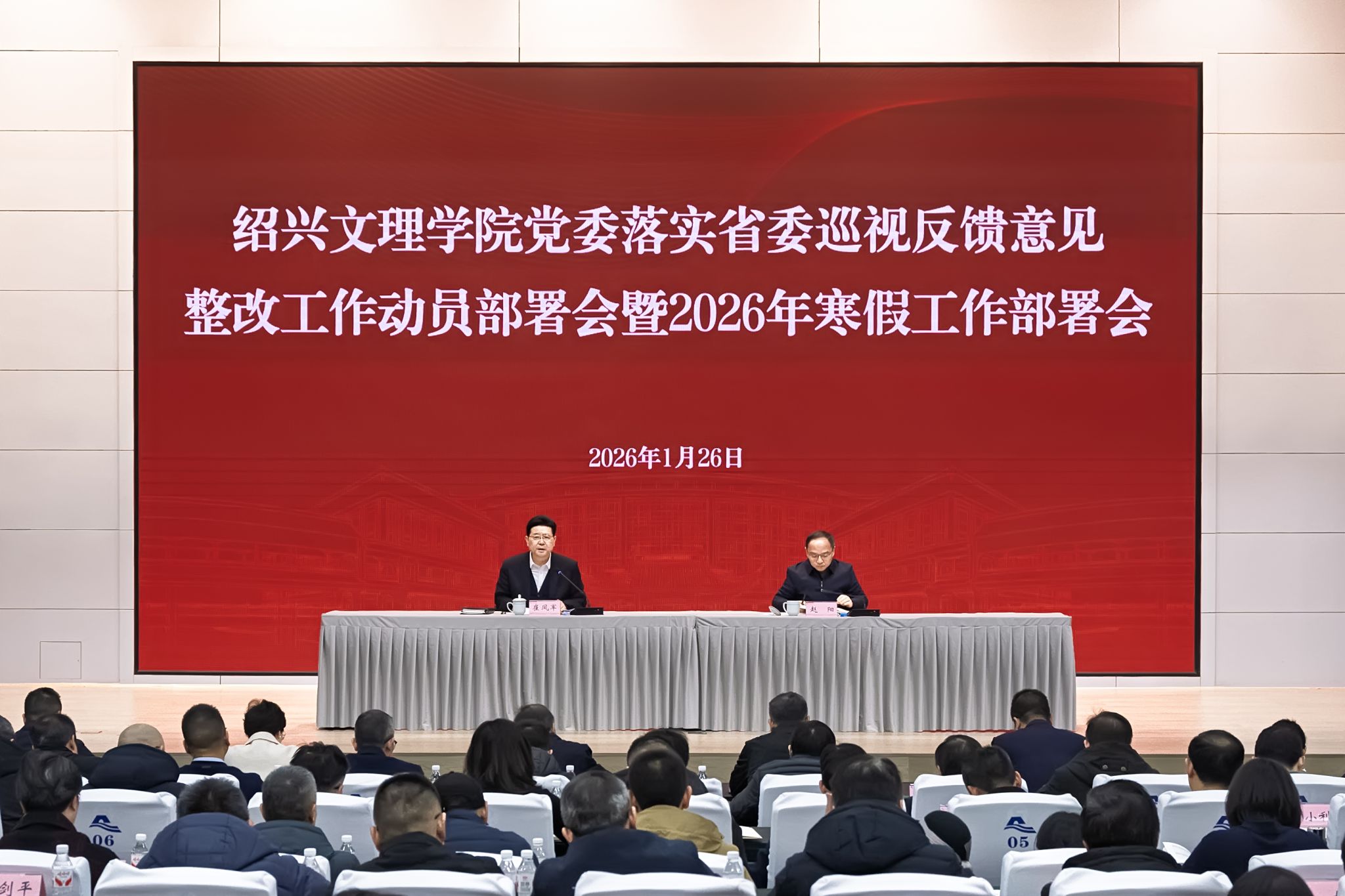 1月26日上午,学校召开巡视整改工作动员部署会暨2026年寒假工作部署会,贯彻落实省委巡视反馈会议部署要求,动员全校上下高度重视起来、迅速行动起来,坚决抓好巡视整改工作。校党委书记崔凤军讲话,校长、党委副书记赵阳主持会议。学校党政领导班子成员、全体中层干部参加会议。