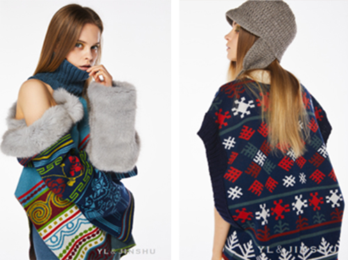 传统民族服饰往往结构宽松、自由包裹,这一特性被YL&JINSHU延展为秋冬针织服的核心版型:如超大肩线斗篷、下摆不规则的钩编拼接等,通过“流动”取代“束缚”,展现女性柔韧而有力的身形。