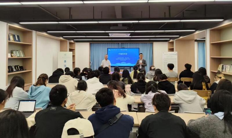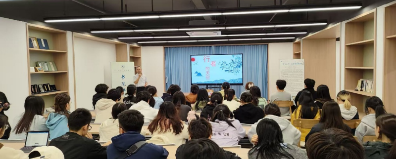 讲座以“行者的天空”为主题,汪柏江先生以“我的故事”为主线,生动讲述了其跨越多个领域的丰富人生经历。从浙江师范大学求学时独爱《楚辞》的“求索”岁月,到浦阳江畔执教的“涉世”之初;从绍兴十八年仕途中的“磨炼”与文化觉醒,到毅然下海、效法商圣的“进击”之路;从踏遍全球的“遨游”壮举,到收购古籍、兴建藏书楼的“归来”初心,他以“步履不停”诠释了行者精神。在结语中,汪柏江先生提炼出“人生即选择”的深刻体悟,强调“选择即无悔,做到极致”的信念,其“行者无疆、行者不惧”的人生态度深深感染了在场师生,引发了广泛共鸣。
