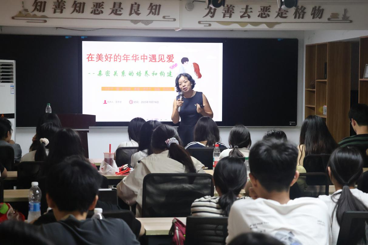 现场氛围温馨而专注。王老师借助生动的案例和互动式提问,引导同学们进行自我反思,理解早期经历对关系模式的影响,学习如何平衡依赖与独立,掌握有效沟通的核心技巧。同学们纷纷表示,讲座内容直击内心困惑,不仅传授了“识爱”的智慧,更赋予了“去爱”的勇气与能力,受益匪浅。本次讲座是将“三全育人”理念落细、落实的生动缩影。通过精准回应学生最关切的情感需求,将心理育人工作前置,变被动干预为主动赋能,有效促进了学生的人格完善与心理韧性。