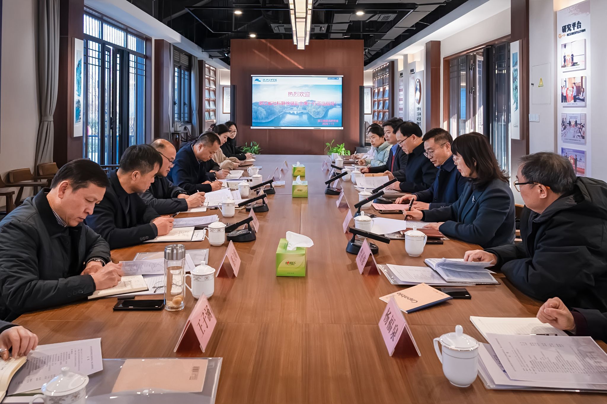1月13日下午,省社科联党组成员、副主席徐健,省社科联社团处处长黄获,市社联党组书记、主席陈富根,省社科联社团处二级调研员方福明等人来校调研。两家省级民研机构浙江省鲁迅研究会、浙江省稽山王阳明研究院参与调研。