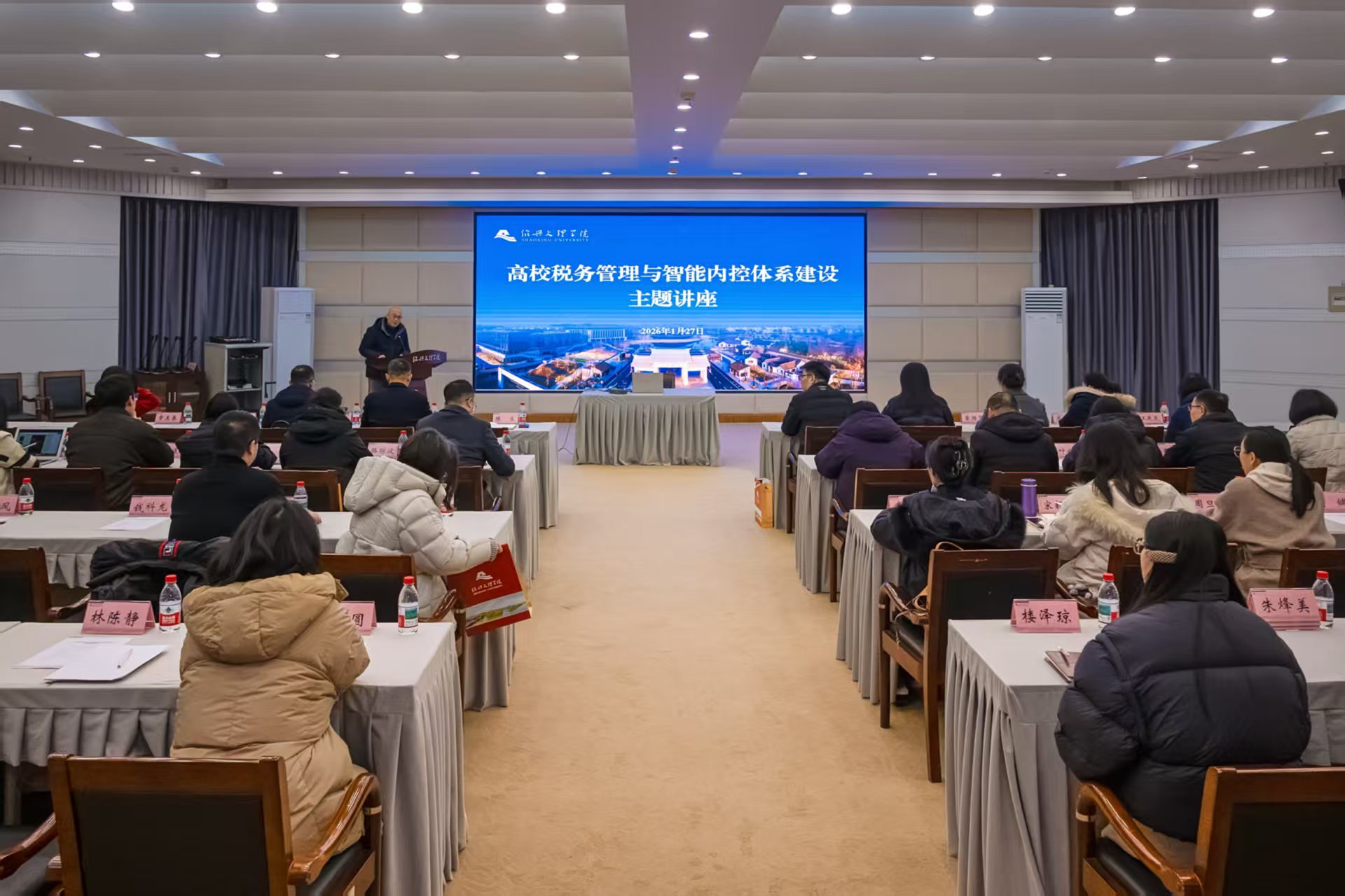 1月27日上午,由绍兴高校财务联盟主办、绍兴文理学院承办、绍兴市会计领军(高层次)人才委员会协办的绍兴高校财务联盟系列活动之高校税务管理与智能内控体系建设主题讲座在图书馆一楼报告厅成功举办。讲座特邀绍兴市会计领军人才委员会主任包关云、上海复翼软件开发有限公司浙江分公司总经理陆琦担任主讲嘉宾,绍兴文理学院计划财务处副处长章美春主持,绍兴理工学院等10所在绍高校的财务负责人及业务骨干共40余人参会。
