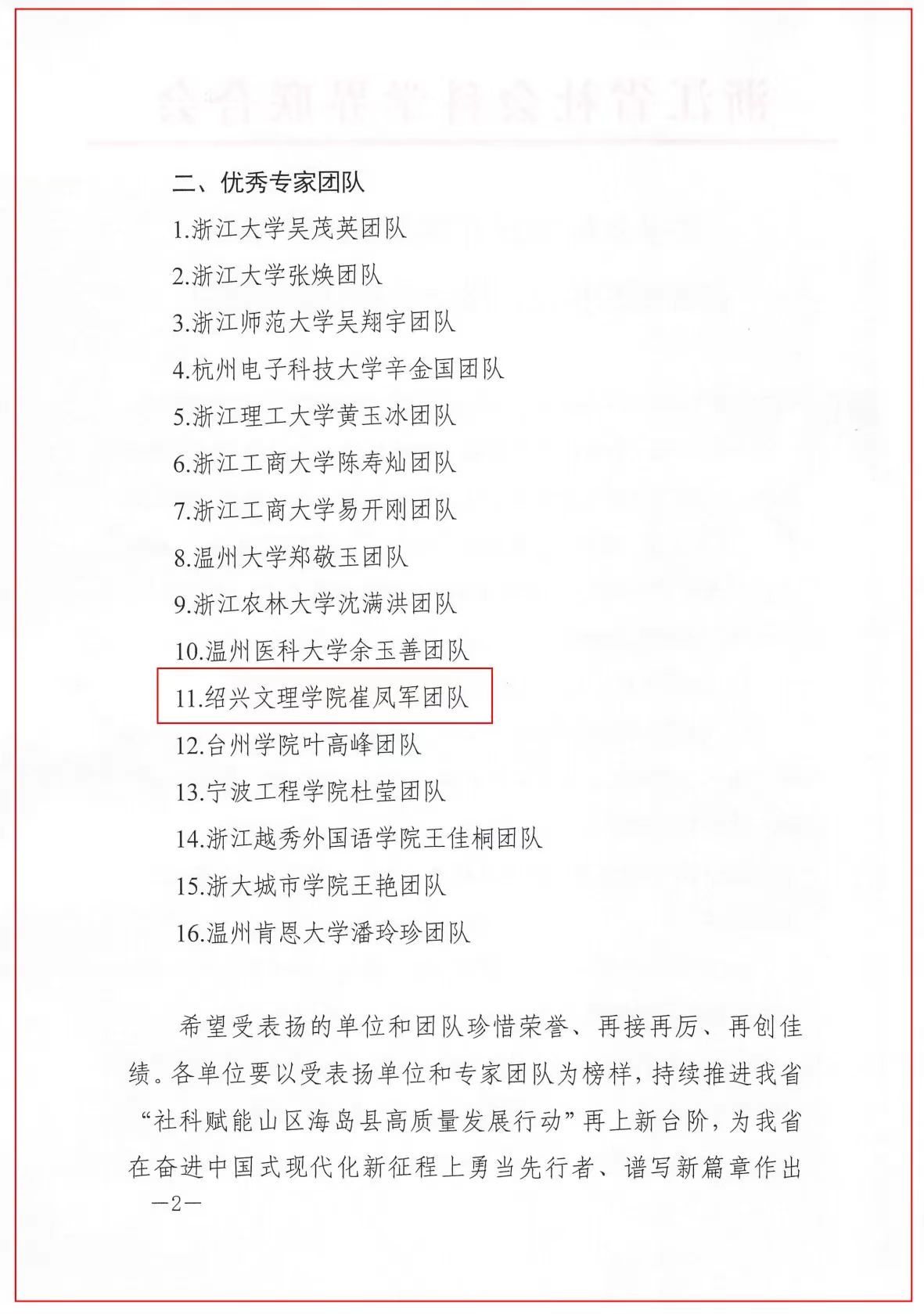 11月26日上午,浙江省社科联在丽水市组织召开2025年“社科赋能山区海岛县高质量发展行动”工作推进会,对全省18家组织单位、16家专家团队予以通报表扬并颁奖,以表彰先进,推动行动走深走实。绍兴文理学院社科联获评2025年度浙江省社科赋能行动优秀组织单位,崔凤军团队获评优秀专家团队。