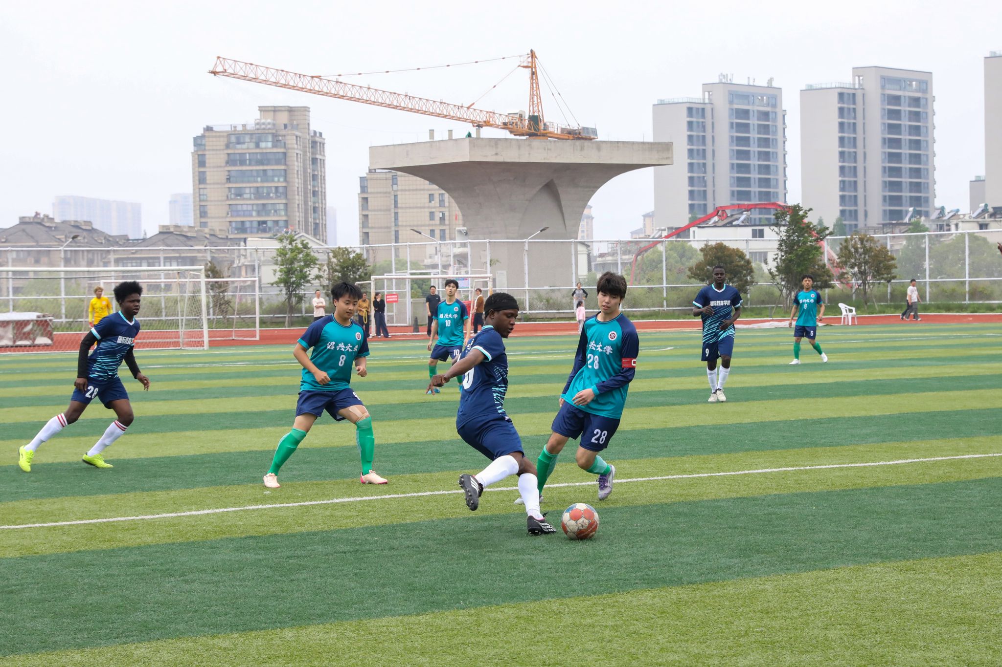 开幕式结束后迎来首场焦点对决,国际教育学院与生命与环境科学学院的较量激烈上演。体育学院国家级裁判汪啸老师昨天刚刚执裁完浙江城市足球联赛嘉兴队和宁波队的比赛,今天马不停蹄又执裁本场比赛,国家级裁判执裁校级比赛这也是比赛的一个亮点。比赛开场后,双方迅速进入状态,生命与环境科学学院率先发起攻势,通过精准的传球并把握机会,开赛7分钟就首先破门。国际教育学院积极组织反击,多次制造威胁并逐渐掌握了场上主动,最终经过90分钟的鏖战,国际教育学院凭借出色的团队配合与进攻效率,以4:1战胜生命与环境科学学院,展现了昂扬的竞技风采。比赛不仅展现了球员们的精湛球技与团队协作,更体现了学子昂扬向上的精神风貌,场上激烈角逐,场下掌声不断,共同营造了浓厚的校园体育氛围。