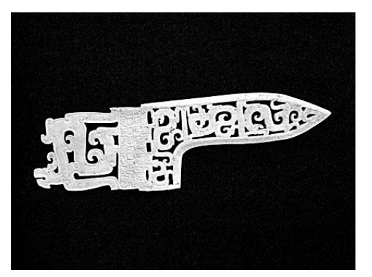 平水出土越国龙蛇凤纹镂孔玉戈。演讲人提供
