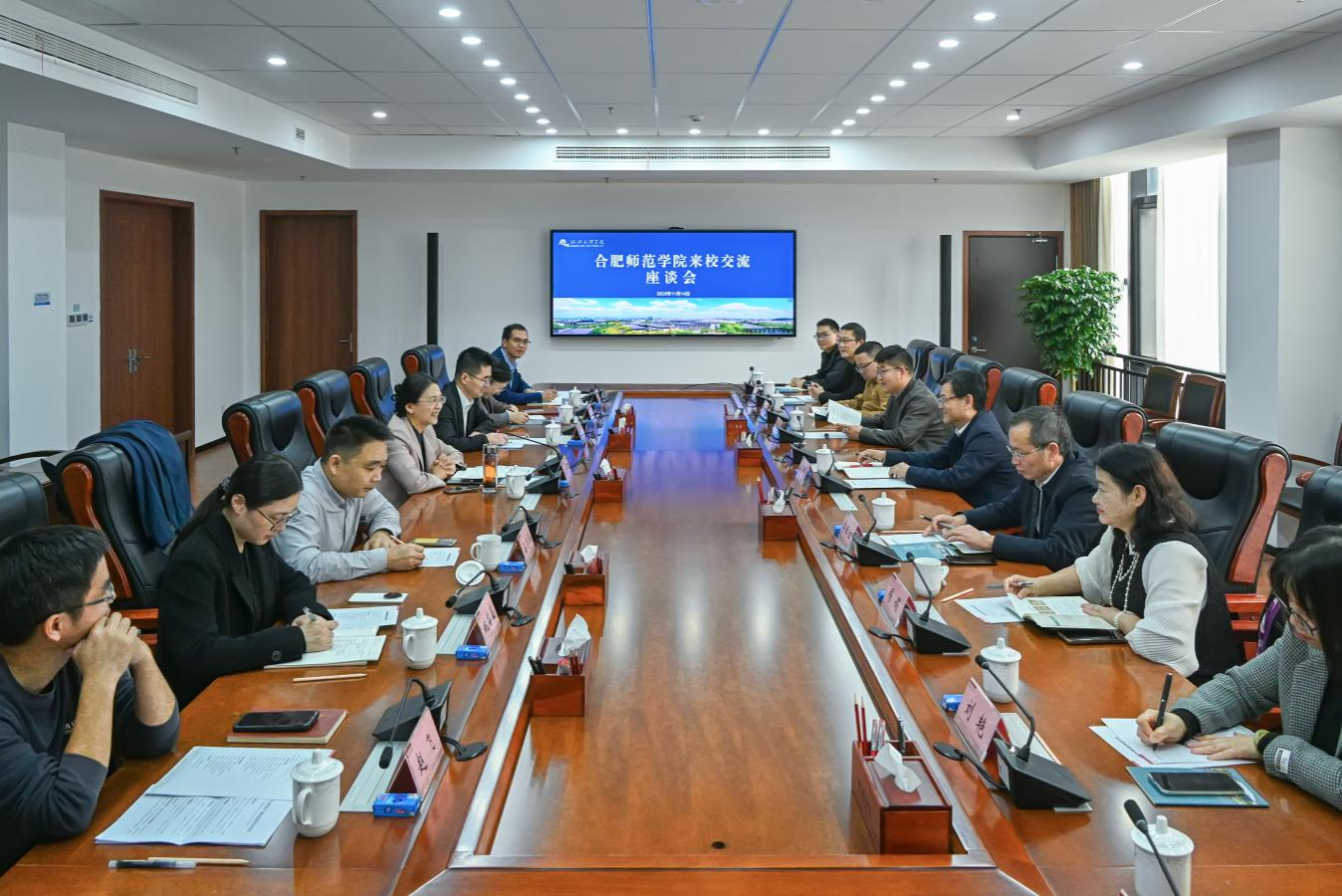 11月14日下午,合肥师范学院党委委员、副校长、组织部部长赵帮恚一行来校访问交流,副校长赵浪平,校党委委员、组织部部长黄曼接待,并召开座谈会。