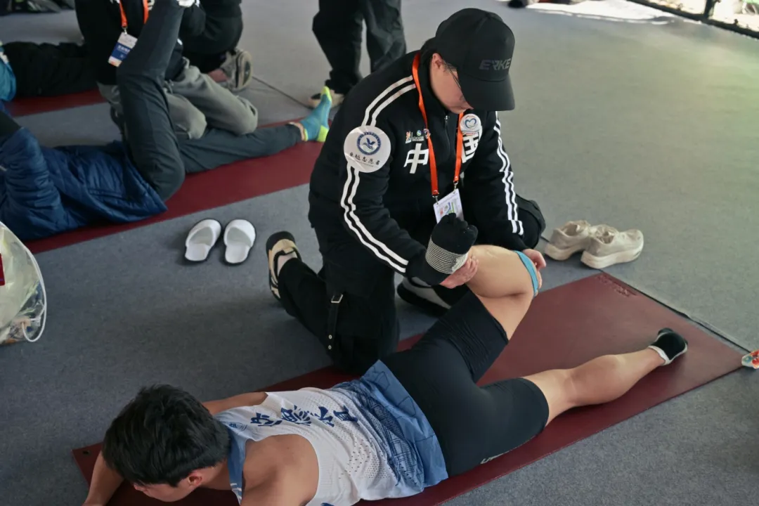 康复区内,志愿者们定位精准,以专业手法为选手纾解肌肉紧张,手法流畅而沉稳。