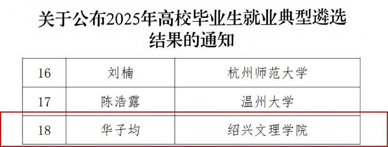 近日,喜讯传来,我校商学院(法学院)2021届法学专业毕业生华子均,获评教育部2024—2025年度“高校毕业生基层就业卓越奖学(教)金”,同时获评“浙江省2025年高校毕业生就业典型人物”。这是我校毕业生首次获得此项全国荣誉,是对广大学子扎根基层、无私奉献的高度认可。