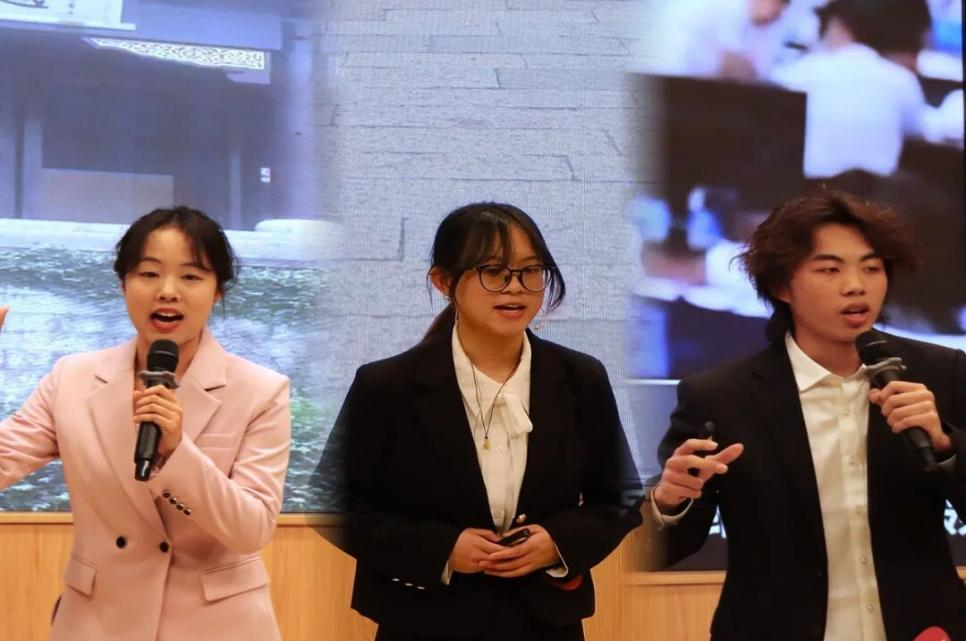 陈紫霞同学以《守护夕阳红呵护朝阳艳——谱写绍兴“一老一小”幸福新篇章》为题,从智慧养老、安心托育到老幼融合,展现了绍兴市将国家规划细化为街巷温情的生动实践。沈佳妮同学围绕《“软硬件”入乡,铺就乡村“共富路”》进行分享,从家乡诸暨马剑的蜕变切入,生动阐释了乡村振兴中“投资于物”筑牢发展底盘、“投资于人”激活内生动力双向赋能的浙江逻辑。蔡超萍同学以《一城地铁,千年文脉——绍兴地铁里的“中国方案”》为题,通过绍兴地铁在穿越古城时为文物让路、为文脉守护的实际行动,生动诠释了浙江在现代化建设中坚守历史遗产保护底线的制度智慧与文化自觉,展现了“让千年文脉在发展中绽放新生”的创新实践。施含笑同学以《花开“浙”里——棠棣村的千万工程“兰”图》为题,讲述了棠棣村从脏乱差到全国美丽乡村的20年蝶变,具体呈现了拆、关、建、兴的发展路径,并以数字兰花产业为例,展示了绿色发展如何真正让村民的钱袋子真正鼓起来,号召青年接过“千万工程”接力棒,续写乡村振兴新篇章。