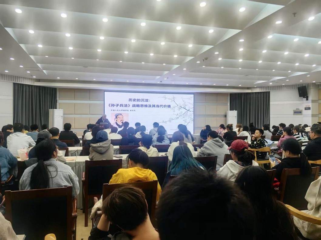 “运用逆向思维看待事物发展,对实现自我价值与社会价值具有重要推动作用。”黄朴民教授特别强调,逆向思维是提升战略思维能力的关键。他通过“听从指挥”与“君命有所不受”、“修道而保法”与“施无法之赏”、“痛打落水狗”与“穷寇勿迫”、“全胜至上”与“并敌一向”四对古代军事辩证关系,结合当代社会场景,深刻阐释了逆向思维在打破认知局限、优化决策中的重要价值。互动环节中,师生围绕“中美竞争中的战略思维应用”“《孙子兵法》与战争残酷性的关联”等问题提问,黄朴民教授耐心解答,观点独到且兼具深度,引发现场阵阵思考。整场讲座持续两个多小时,黄教授引经据典、妙语连珠,在经典智慧与现实问题的碰撞中,让听众既领略了《孙子兵法》的千年魅力,也学到了可应用于生活与学习的战略思维,现场反响热烈。