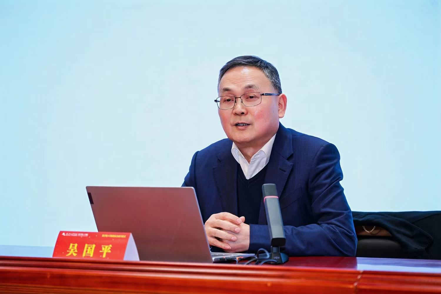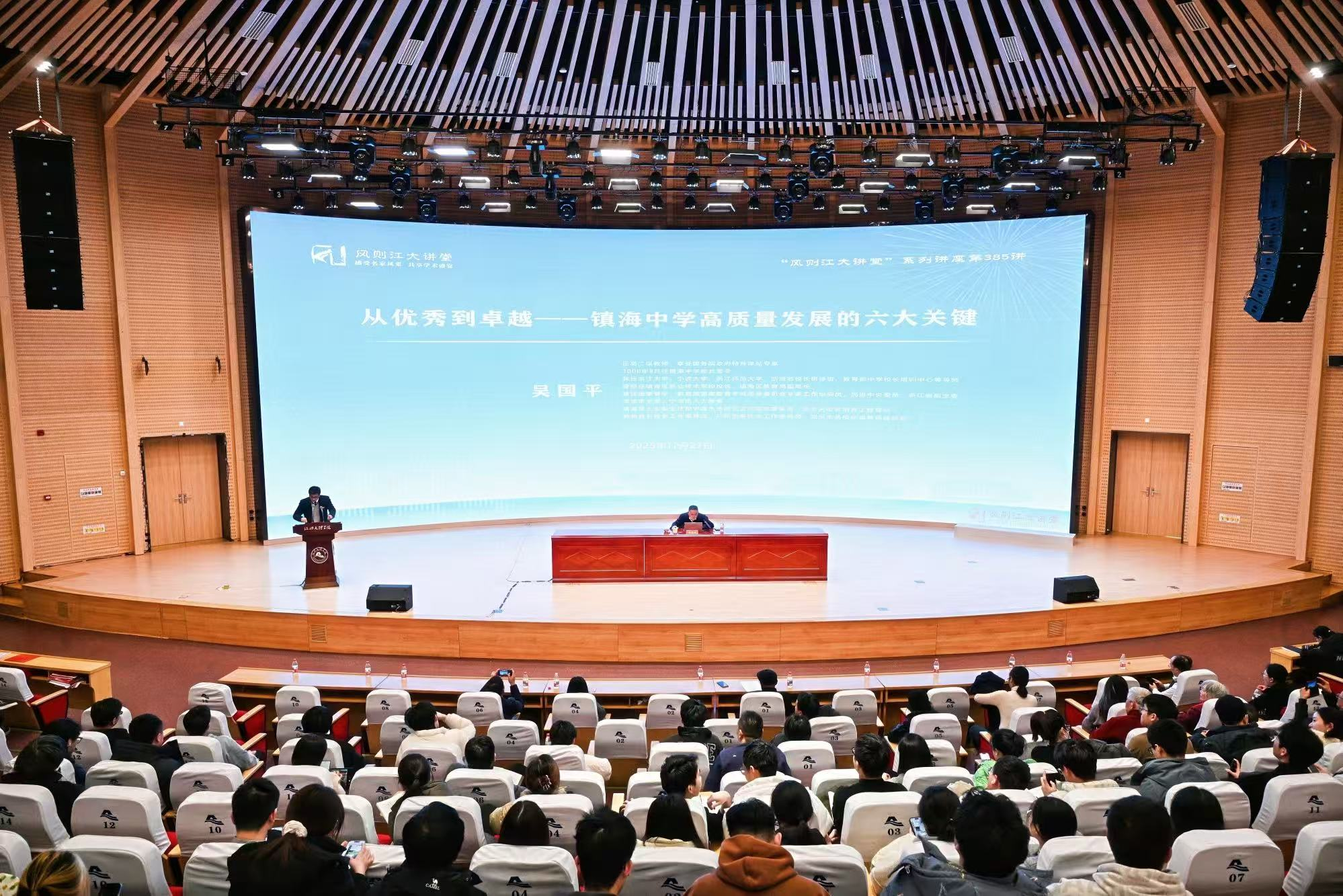 12月27日下午,风则江大讲堂第385讲暨化学化工学院“杰出校友论坛”第1讲“从优秀到卓越——镇海中学高质量发展的六大关键”专题讲座在风则江大讲堂报告厅举行,正高二级教师、享受国务院政府特殊津贴专家、镇海中学校长吴国平应邀作专题报告。绍兴市教育局工作人员、市属中小学校领导、绍兴文理学院祖楠班学员、化学化工学院师生代表等300余人聆听讲座。化学化工学院党委书记潘华泉主持。
