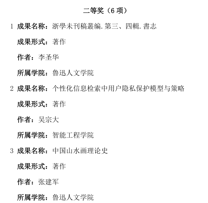 浙江省哲学社会科学优秀成果奖是浙江省哲学社会科学类成果最高奖,每两年评选一次,在我省哲学社会科学研究领域极具影响力。此次成绩的取得,充分展现了我校近年来在科学研究、学科建设与人才培养方面取得的成效。相关职能部门负责人表示,下一步,我校将继续做好标志性科研成果培育工作,加强高水平科研团队建设,力争产出更多高质量研究成果。