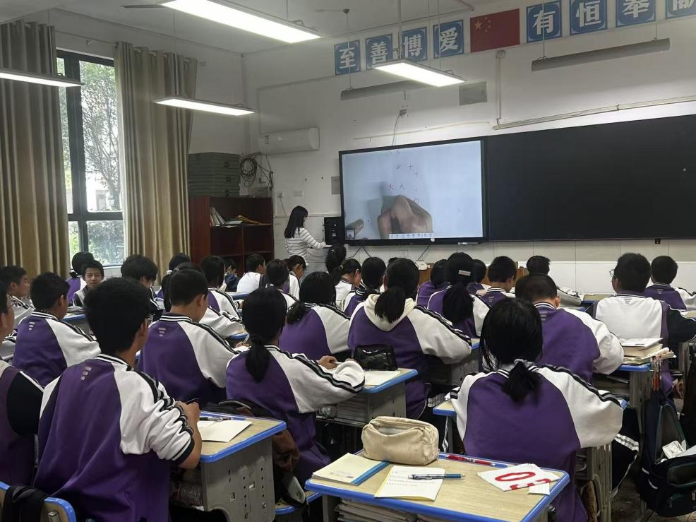 10月29日下午,兰亭书法艺术学院专任教师凌天明博士带领4名硕士研究生前往松阳县第五中学,开展“书法进课堂”美育交流。凌天明为该校教师作了古典诗词与古代文学专题培训,助力提升教师的文学素养。研究生们分组进入初一年级七个班级,为学生讲解书法基础知识,介绍不同书体的辨识方法,并指导学生体验基本用笔技巧。