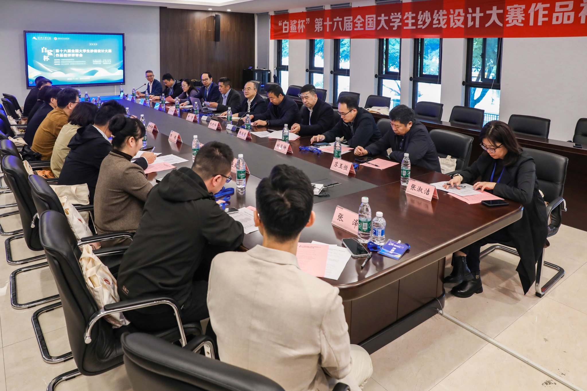 11月3日,由中国纺织服装教育学会主办,教育部高等学校纺织类专业教学指导委员会支持,绍兴文理学院、嵊州雅戈尔毛纺织有限公司承办,光山白鲨针布有限公司冠名的“白鲨杯”第十六届全国大学生纱线设计大赛作品初评评审会在我校顺利完成。