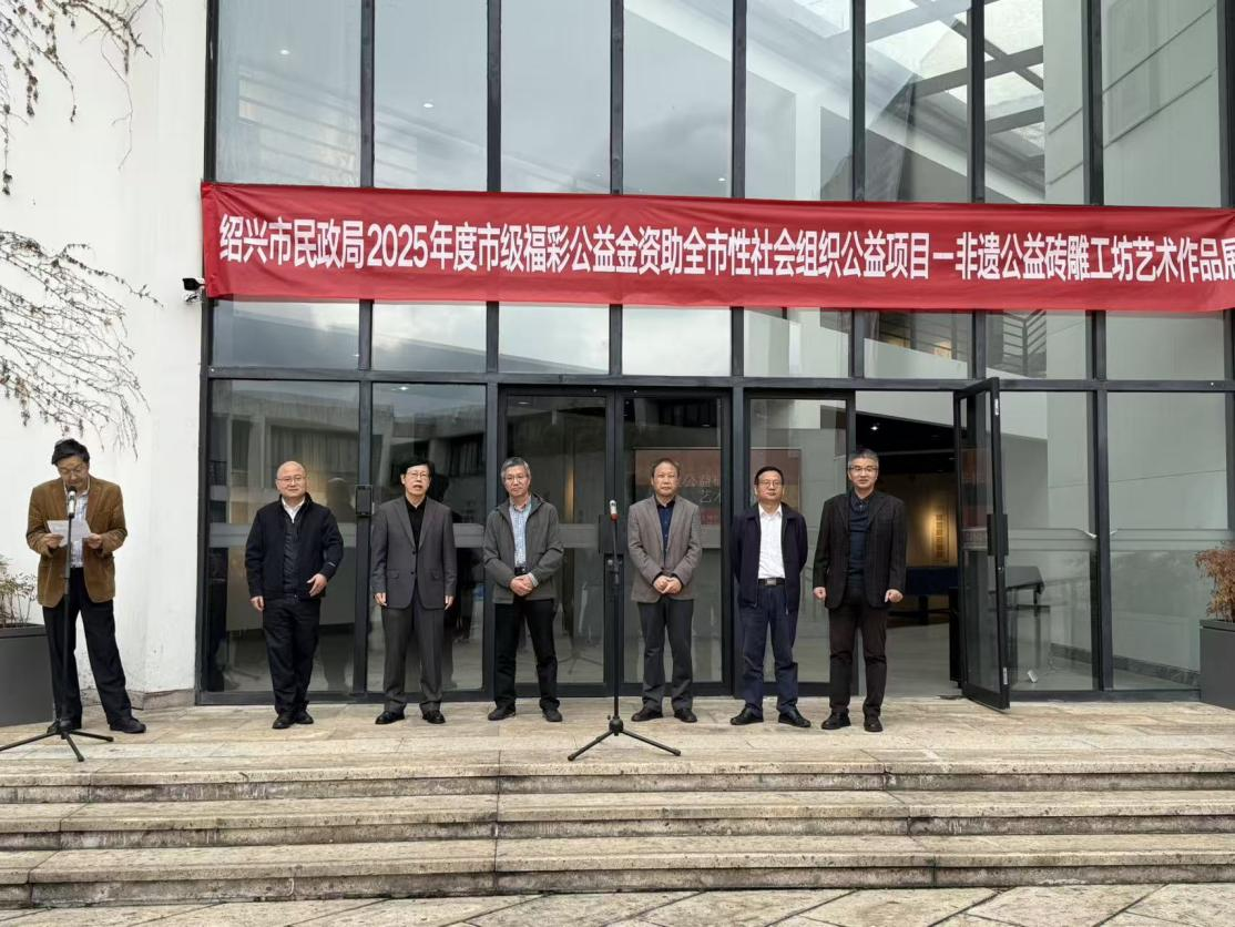 11月11日上午,“非遗公益砖雕工坊艺术作品展”在兰亭书法艺术学院展厅开幕。该展览是2025年度福彩公益金资助的全市性社会组织公益项目“非遗公益砖雕工坊”的重要成果展示,由兰亭书法艺术学院与绍兴市金国胜雕塑艺术馆共同主办。开幕式由绍兴文理学院周一农教授主持。