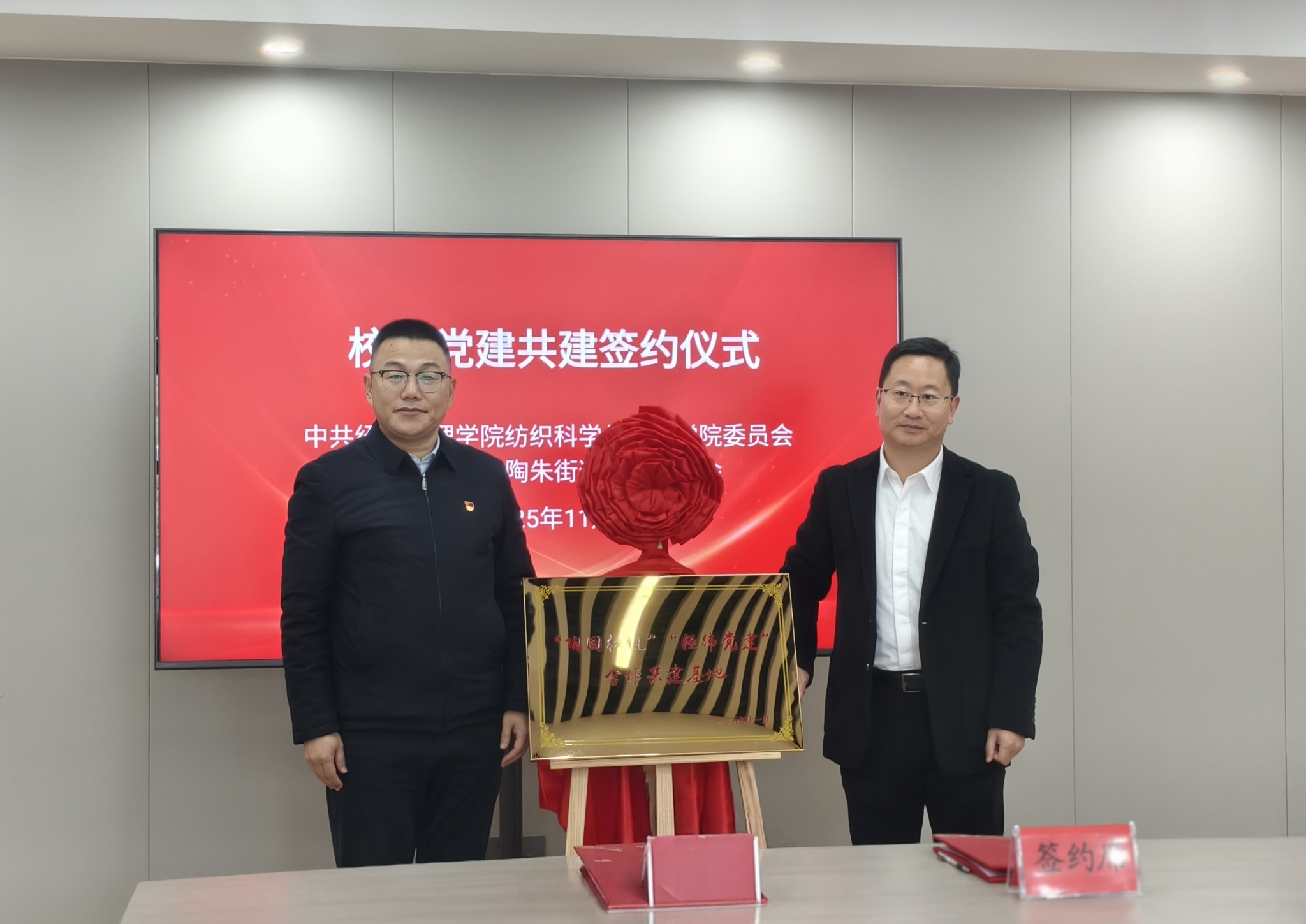 为深入贯彻省委“红色根脉强基工程”与省委教育工委高校党建“四个融合”行动要求,发挥绍兴文理学院校地共生优势,推动教育、科技、人才“三位一体”融合发展。11月25日,纺织科学与工程学院党委与陶朱街道党工委在陶朱街道两新组织党群服务中心举行校地党建联建活动。活动通过“党建联建+产教融合”双轮驱动模式,为地方纺织产业高质量发展注入红色动能。