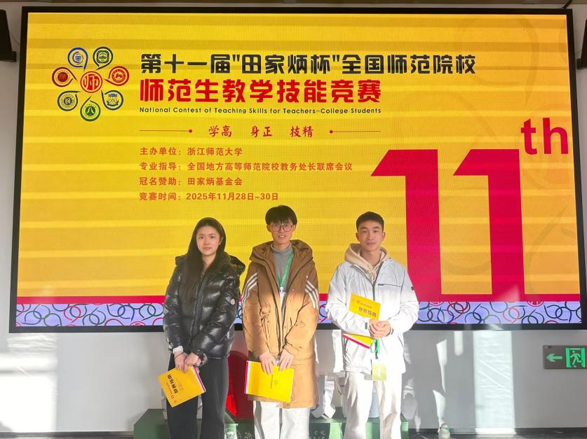 近日,第十一届“田家炳杯”全国师范院校师范生教学技能竞赛落下帷幕。作为全国师范教育领域极具影响力的权威赛事,本届竞赛吸引了全国包括北师大、华师大等289所师范院校的2345名师范生同台竞技,覆盖小学、中学等多个学段及不同学科,竞争异常激烈。我院学子在本届竞赛中表现优异,共斩获一等奖1项、二等奖2项、三等奖2项。